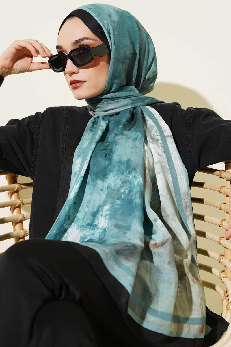 Ebruli Desen Bambu Kraş Şal Zümrüt