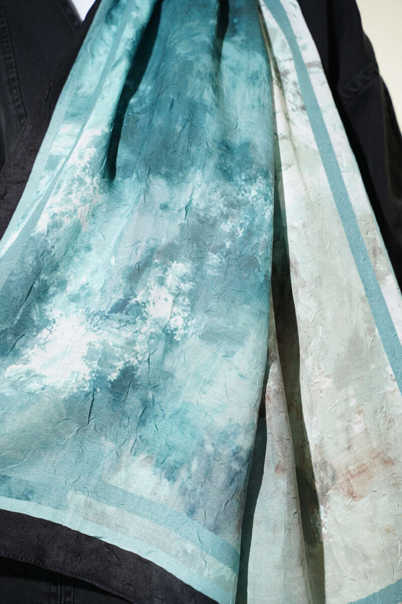 Ebruli Desen Bambu Kraş Şal Soft Mavi