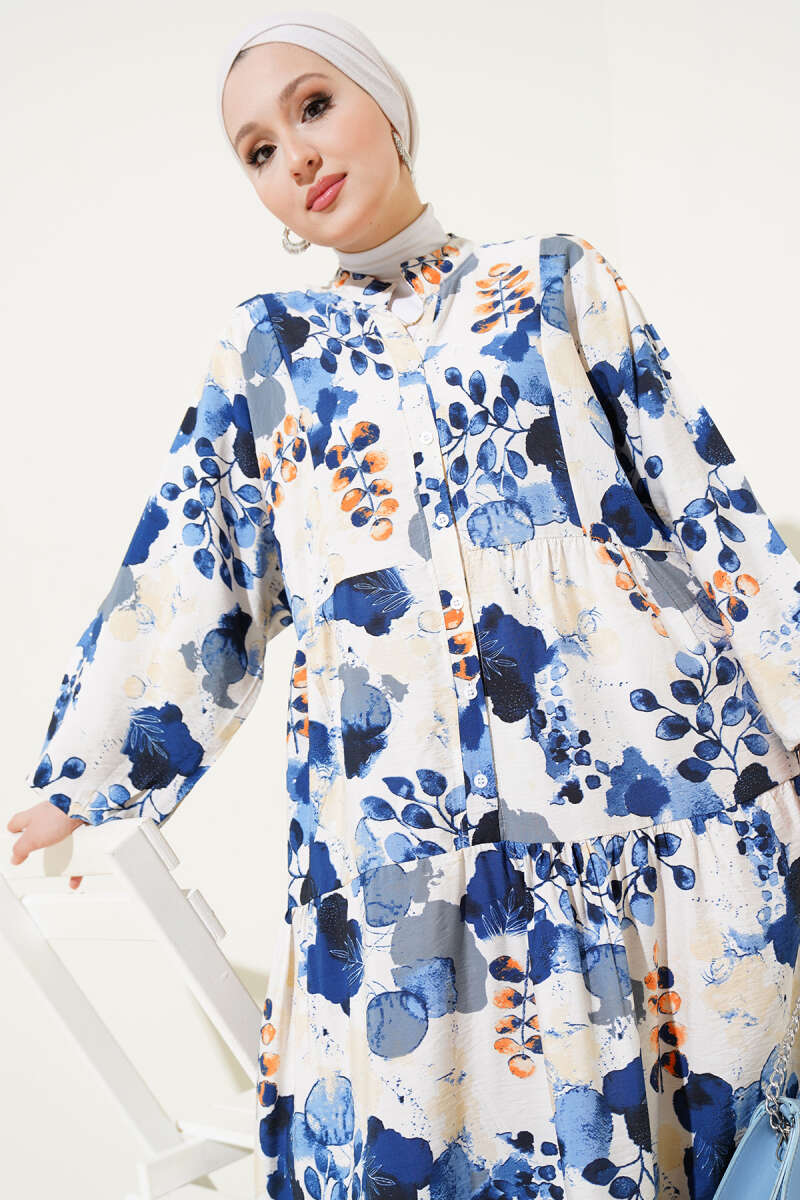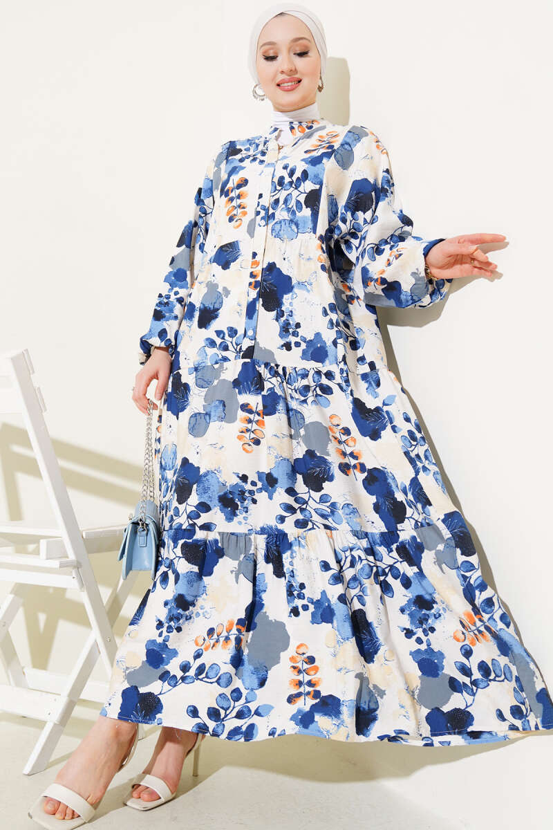 Kolları Fiyonk Detaylı Selanik Elbise Taş