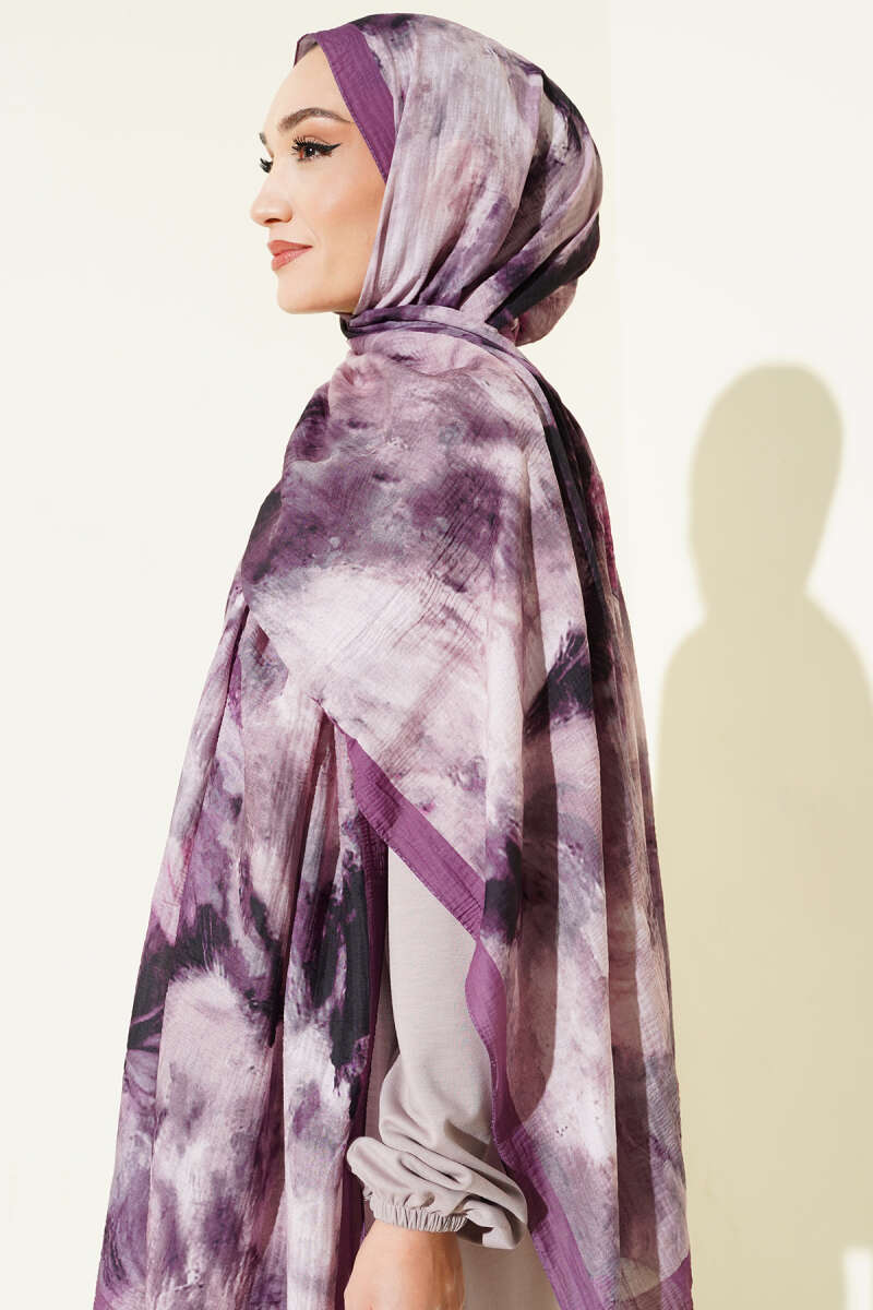 Ebruli Desen Müslin Şal Çağla Yeşili