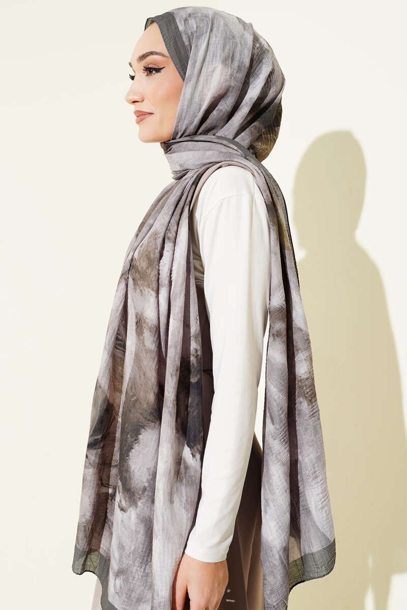 Batik Motifli Modal Şal Antrasit