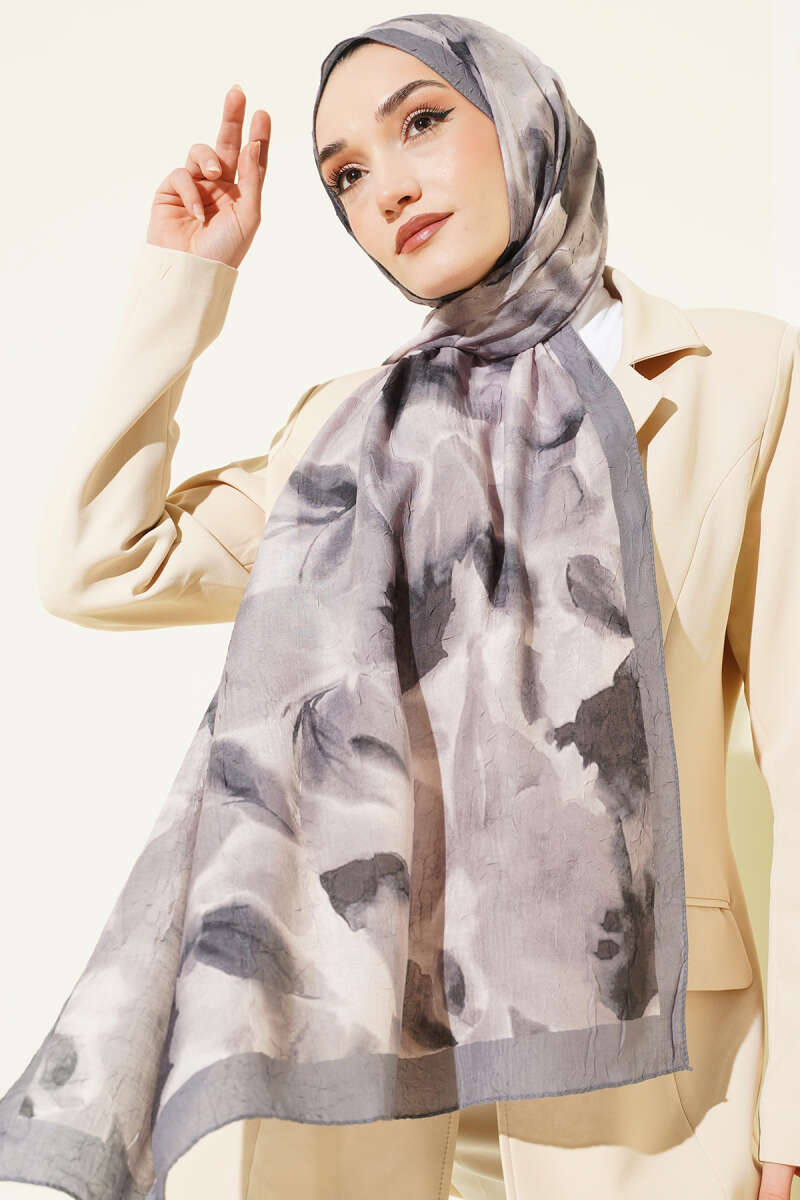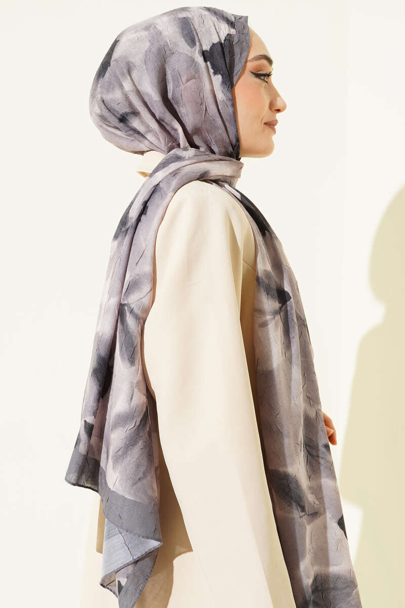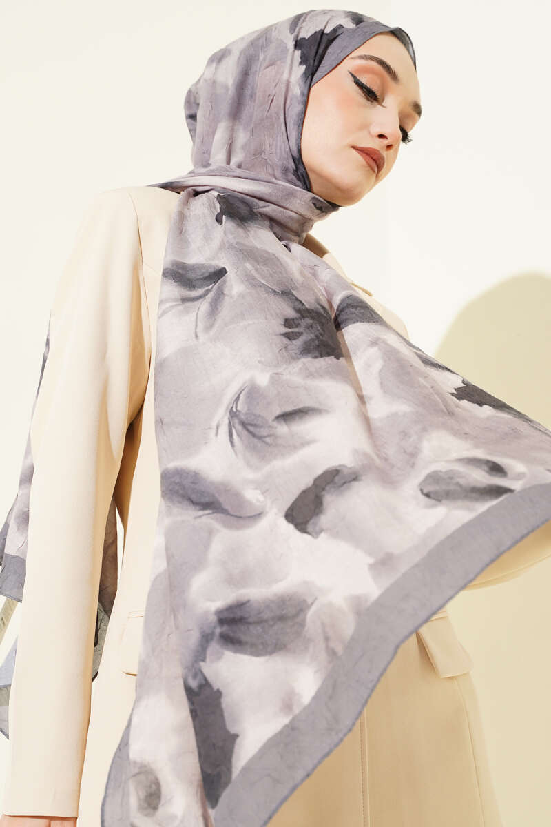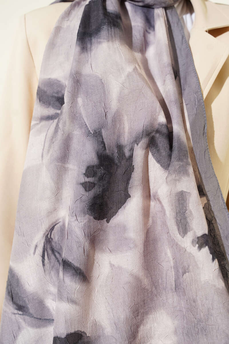 Şerit Geçişli Desenli Bambu Eşarp Füme
