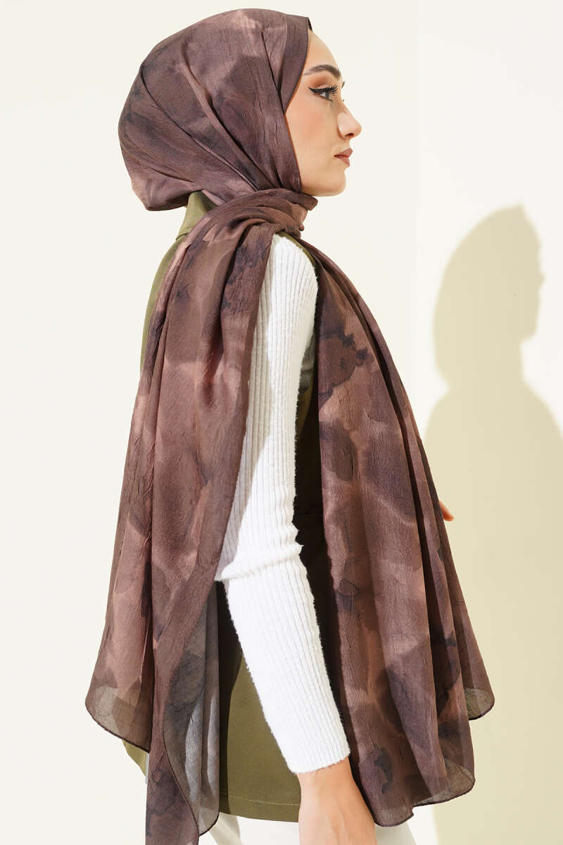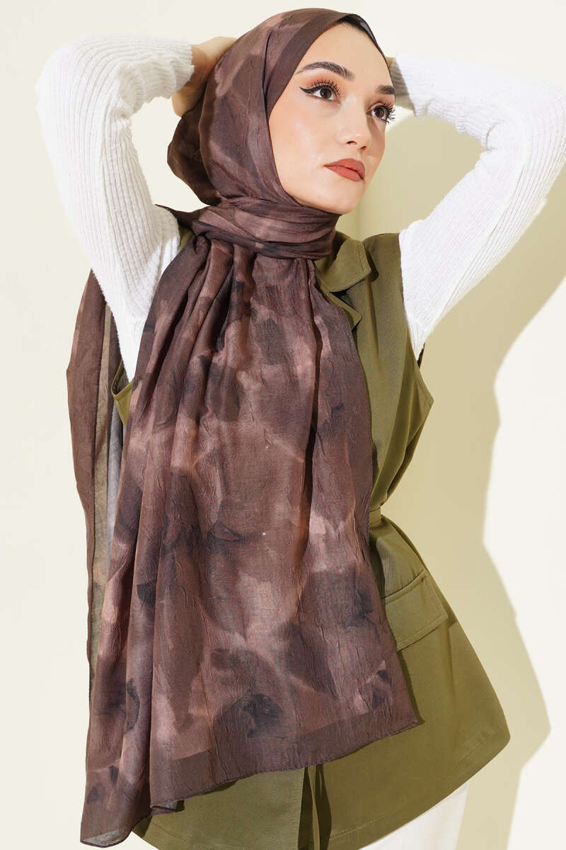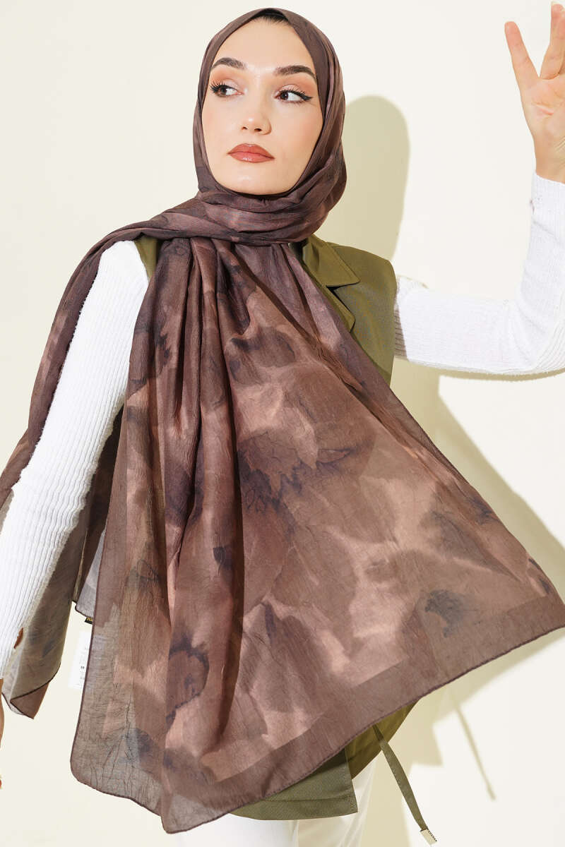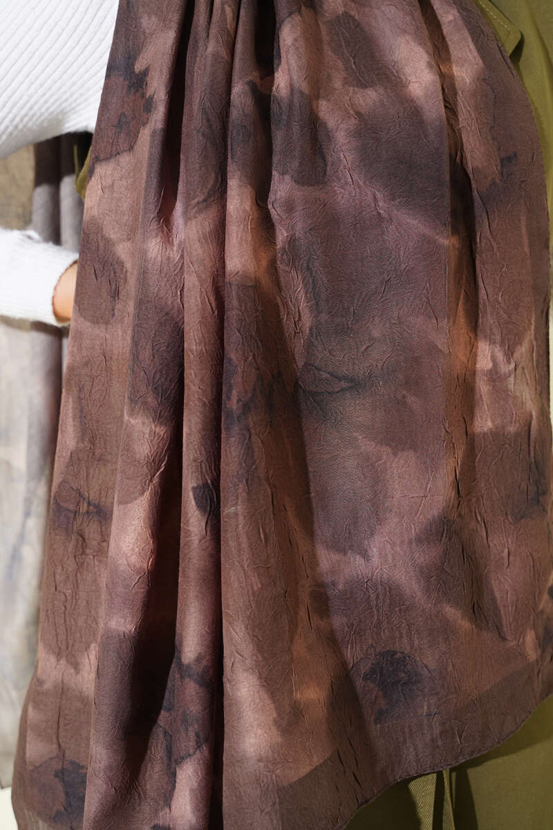 Ebruli Desenli Bambu Kraş Şal Acı Kahve