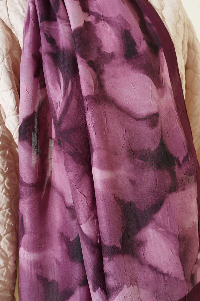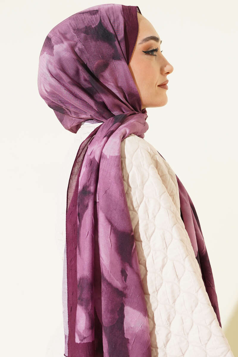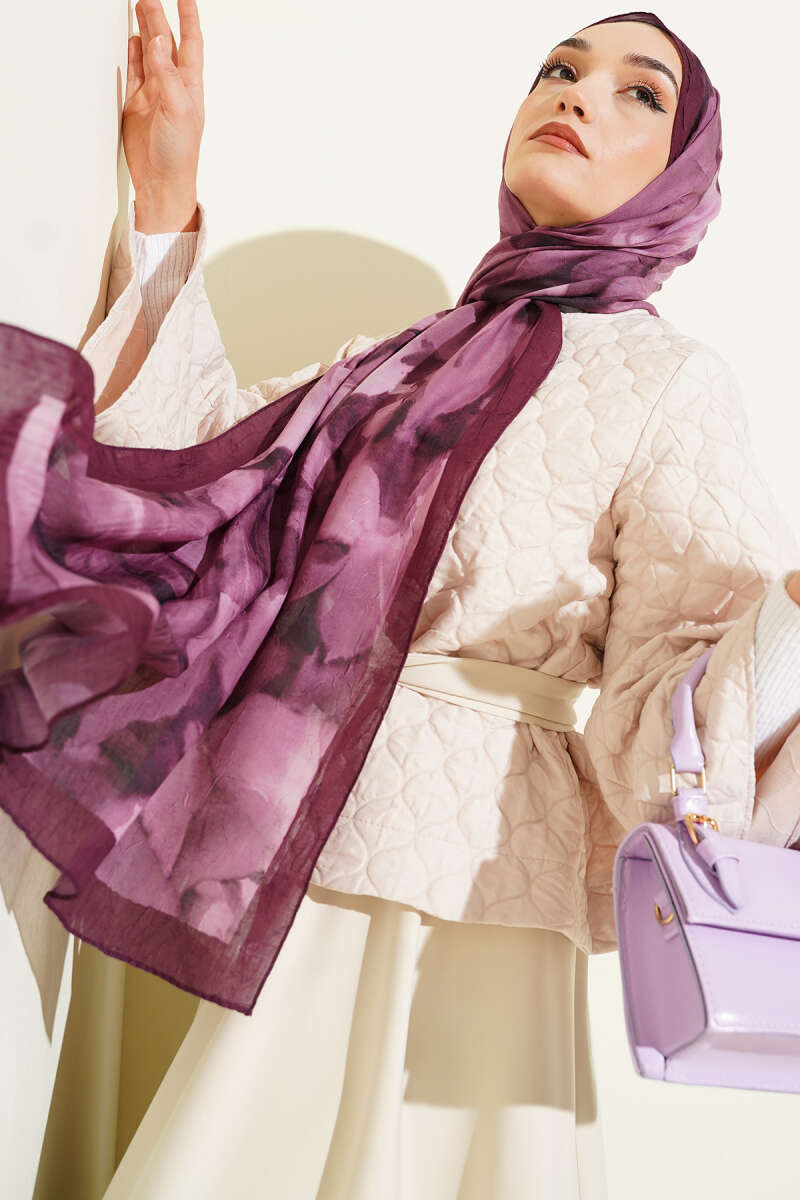Ebruli Desenli Bambu Kraş Şal Bordo