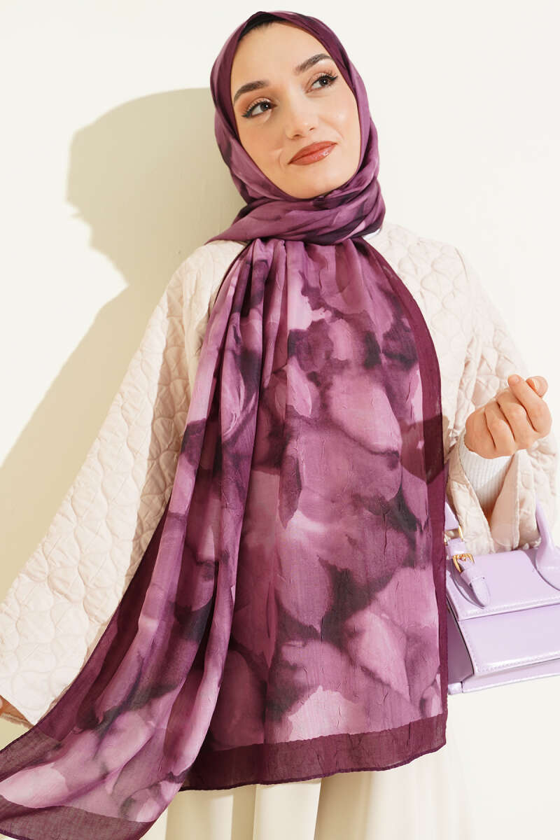 Çiçek Desenli Bambu Kraş Şal Saks