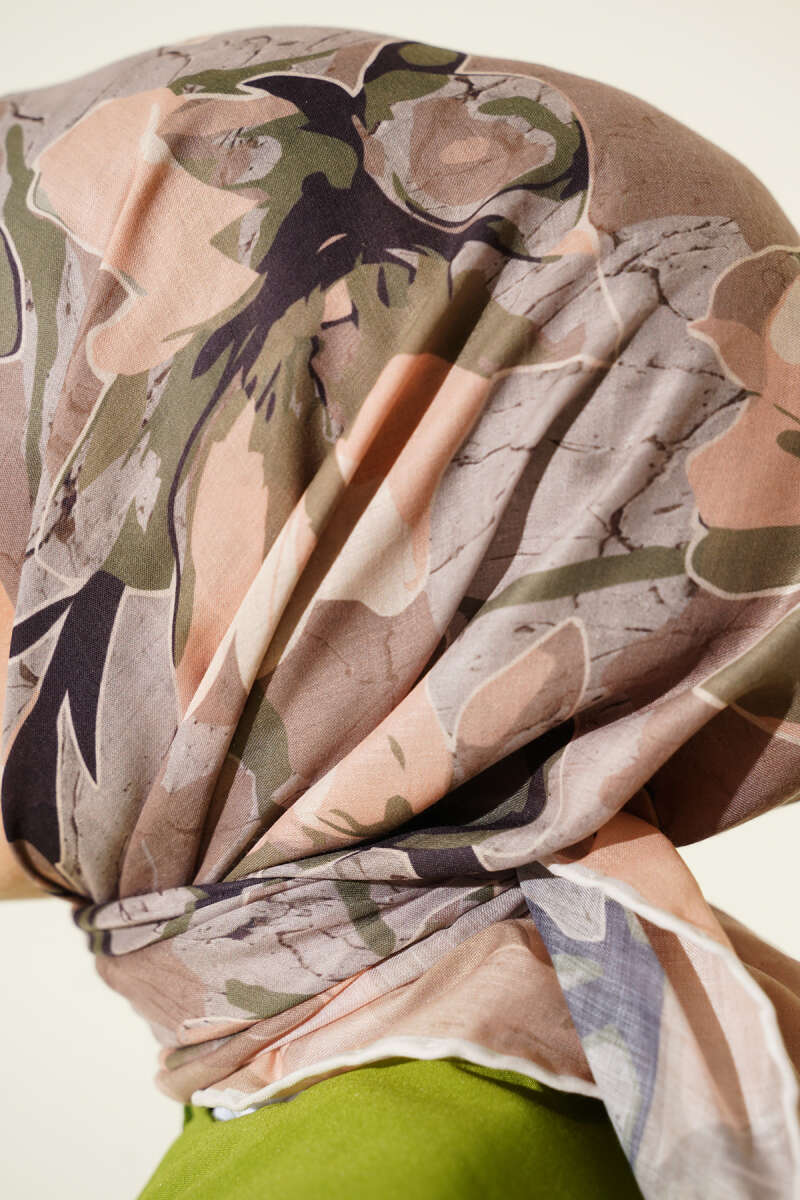 Ebruli Çiçek Desenli Şal Taba