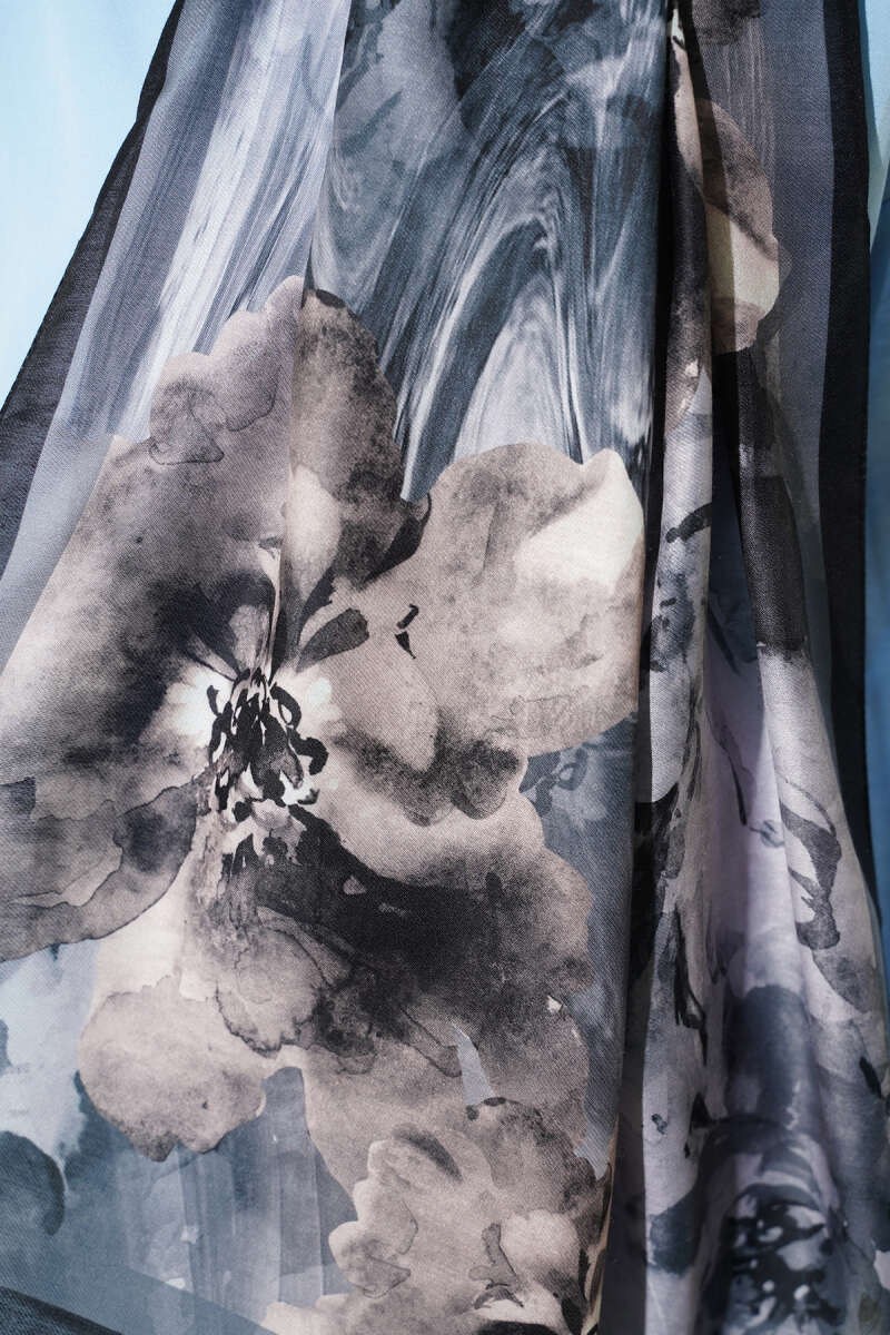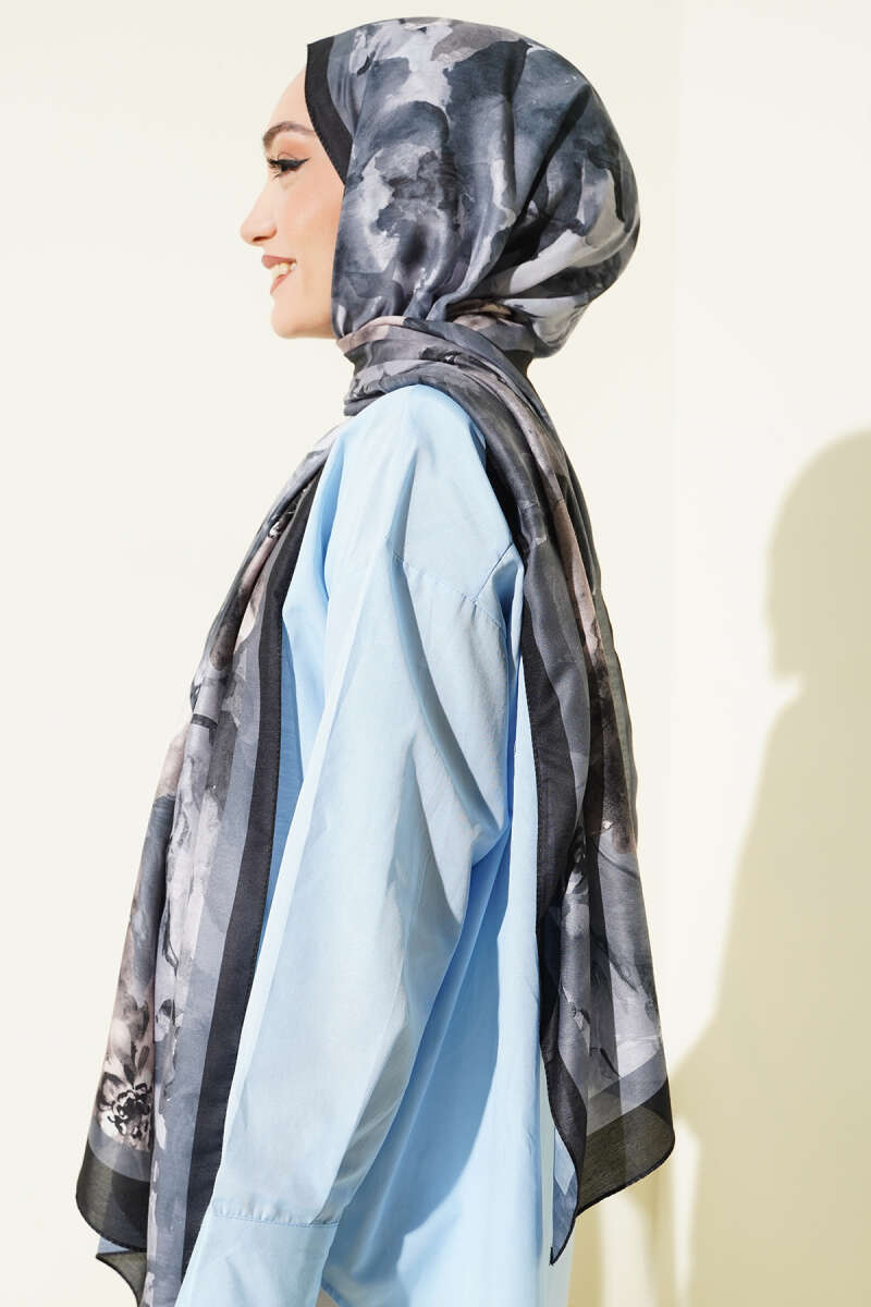Desenli Ribanalı Demore Şal Siyah Lacivert