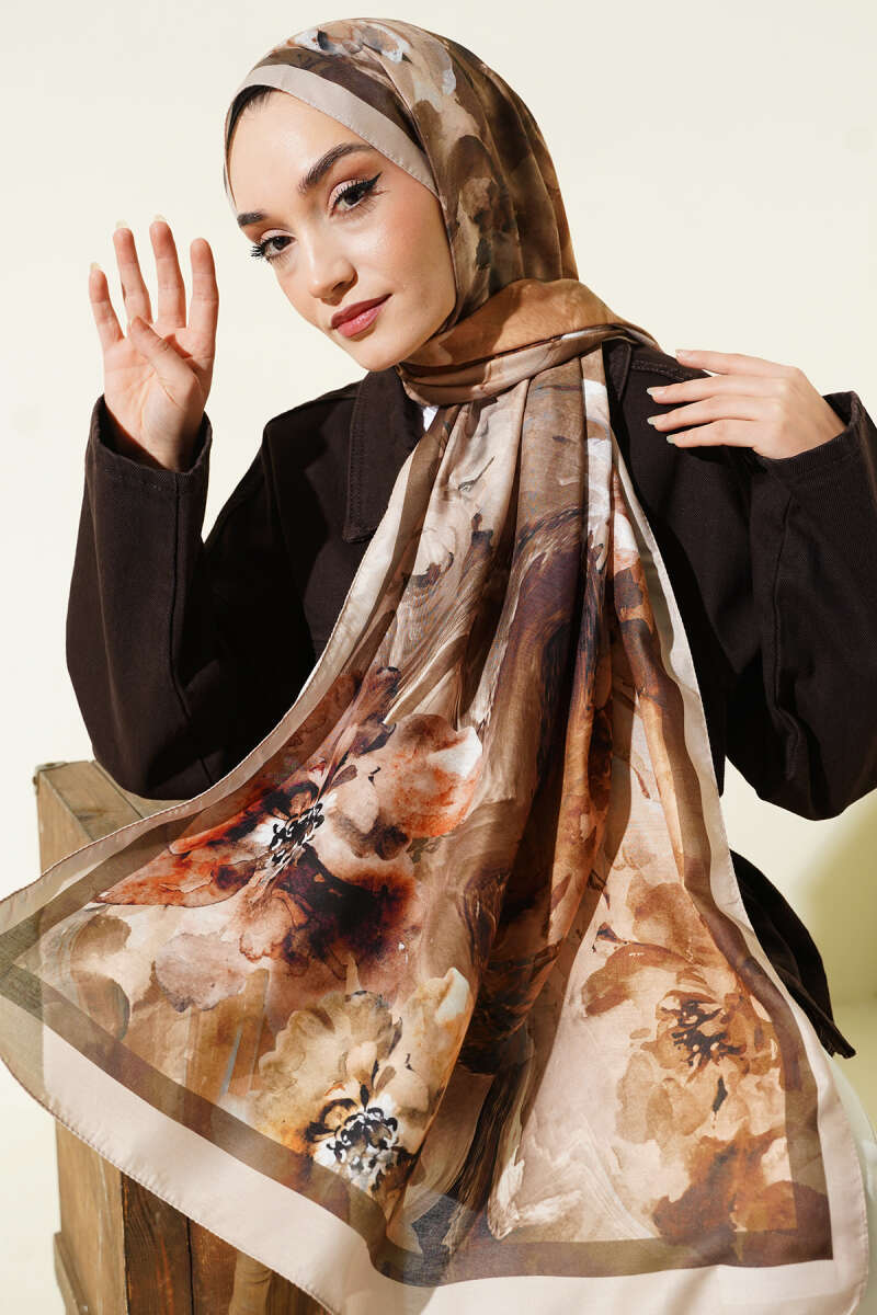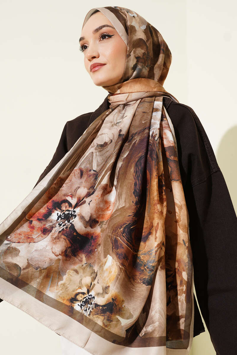 Ebruli Flowers Soft Şal Latte