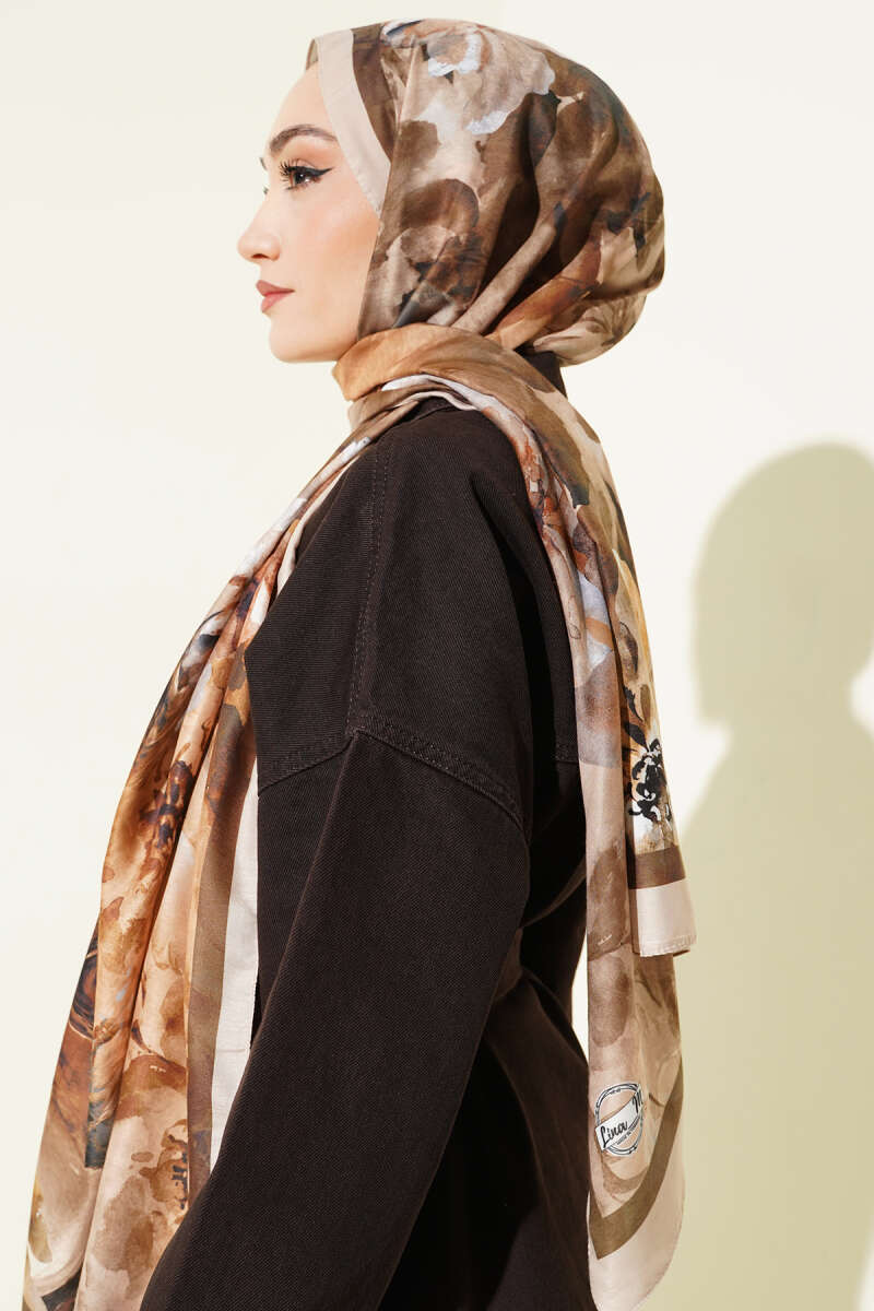 Menekşe Desen Modal Şal Koyu Kahve