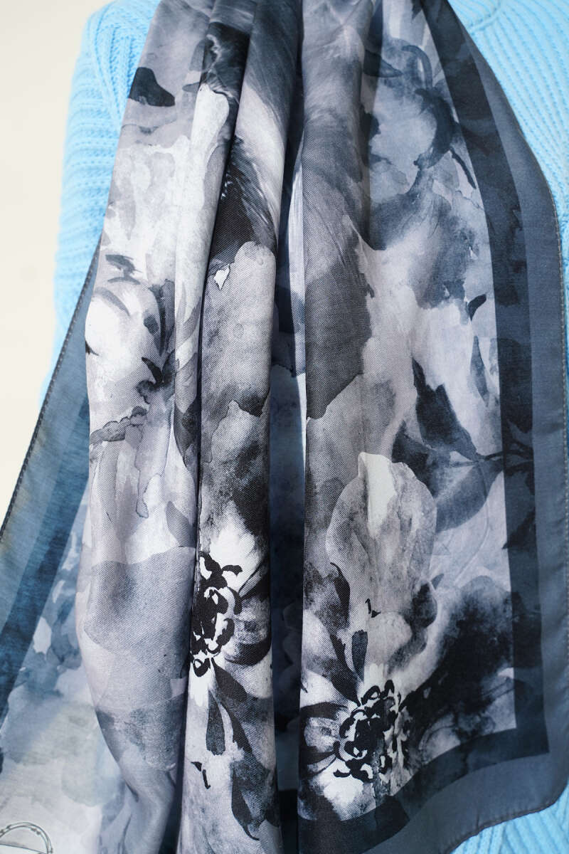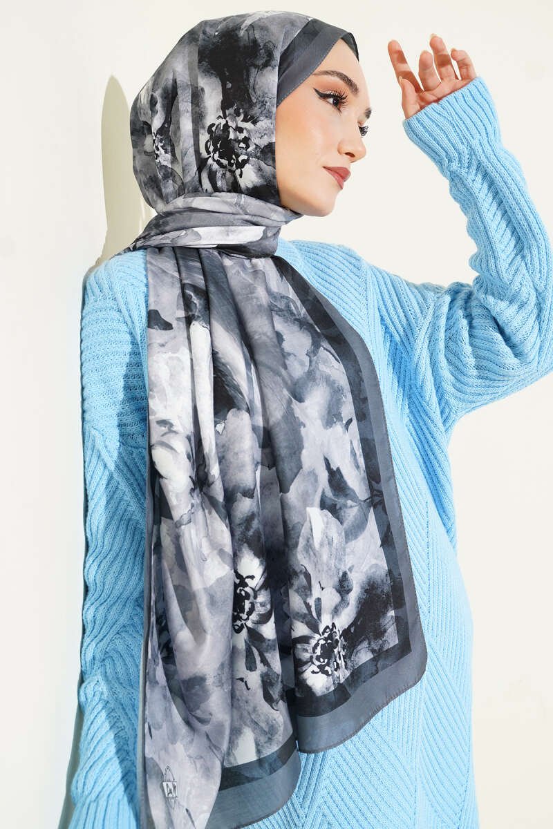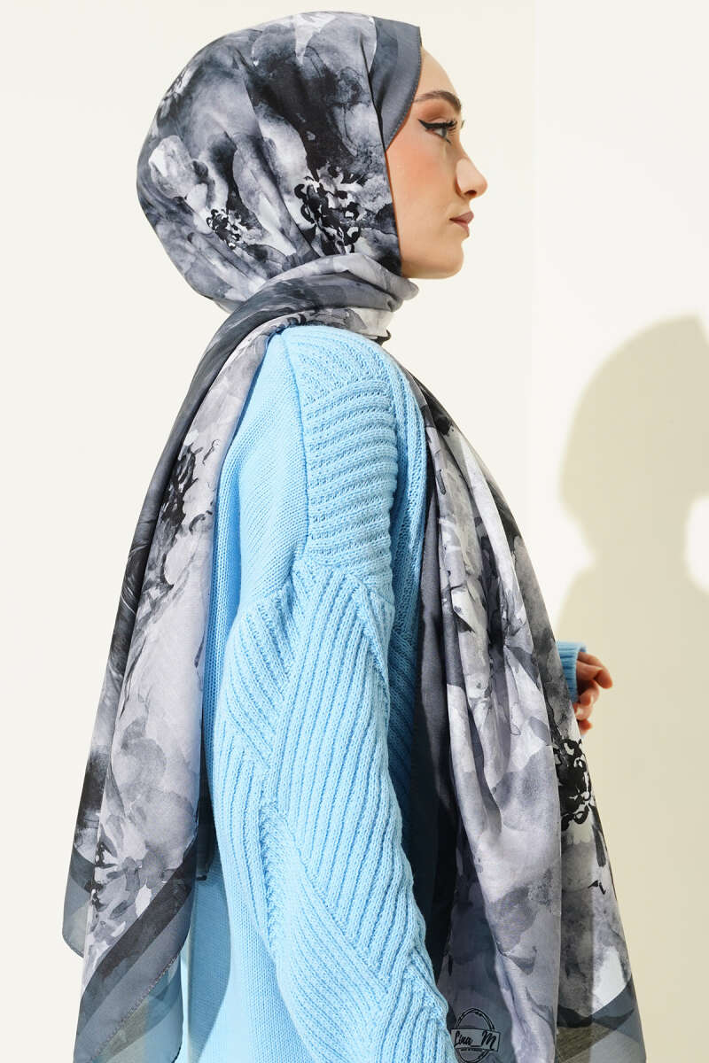 Desenli Ribanalı Demore Şal Siyah Lacivert