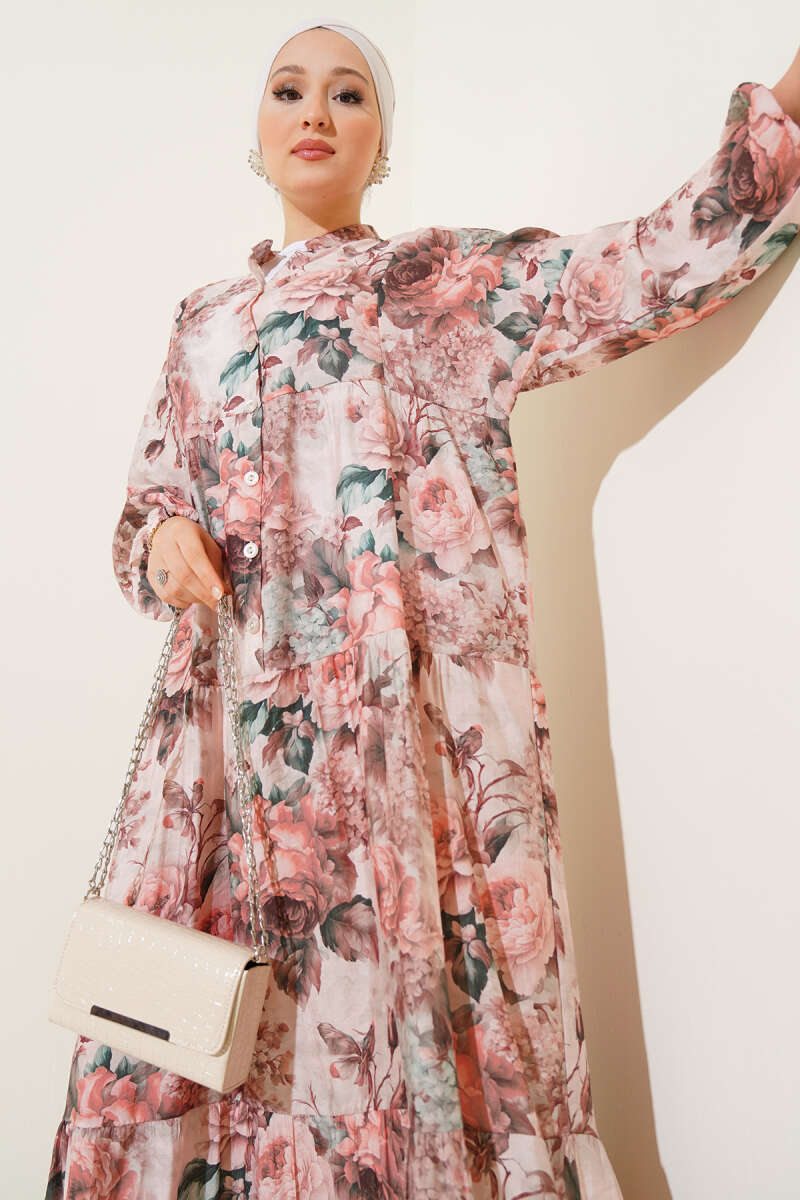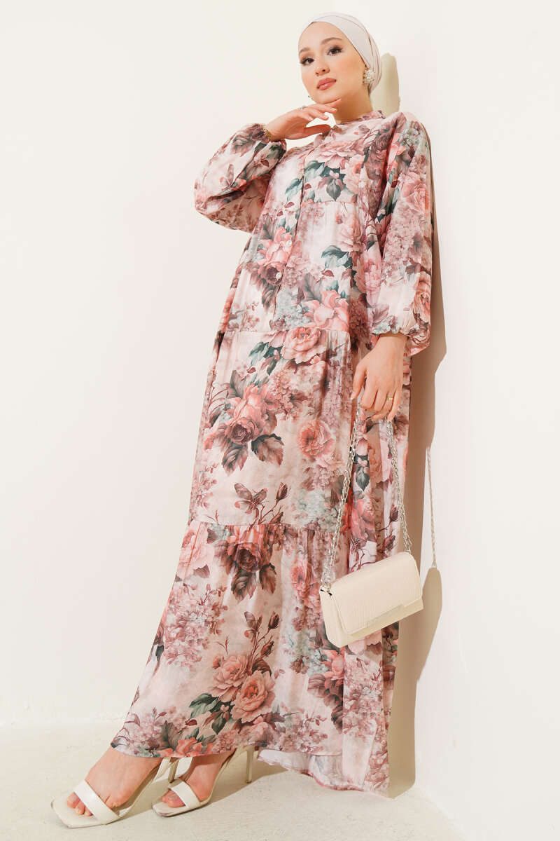 Baklava Desen Ajurlu Triko Elbise Gül Kurusu