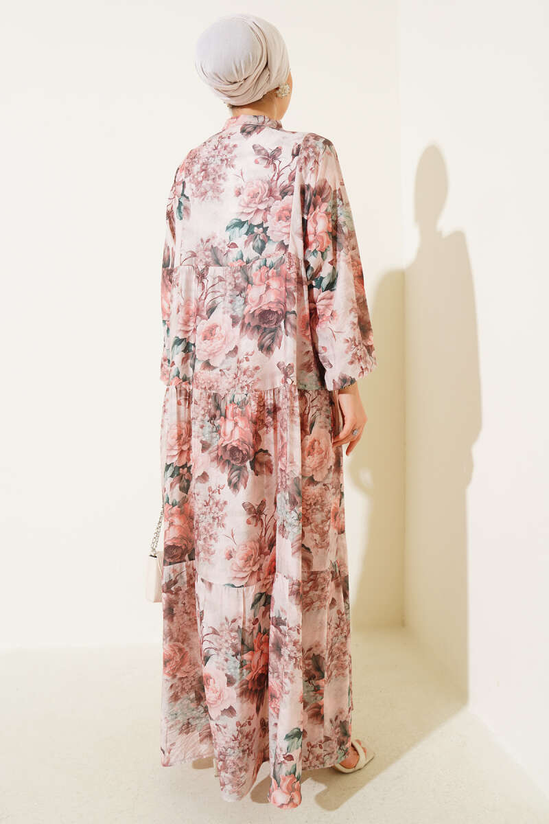 Bel Taşlı Pelerinli Abiye Elbise Kahve