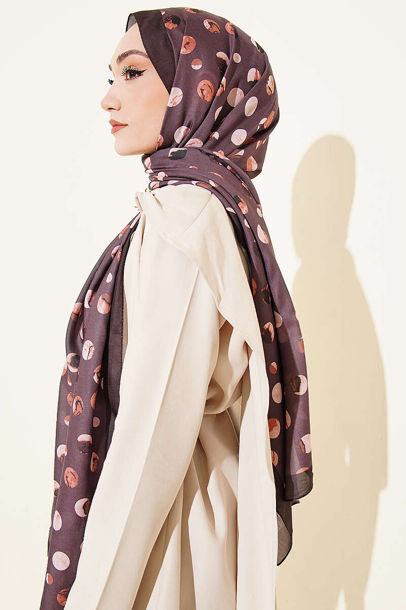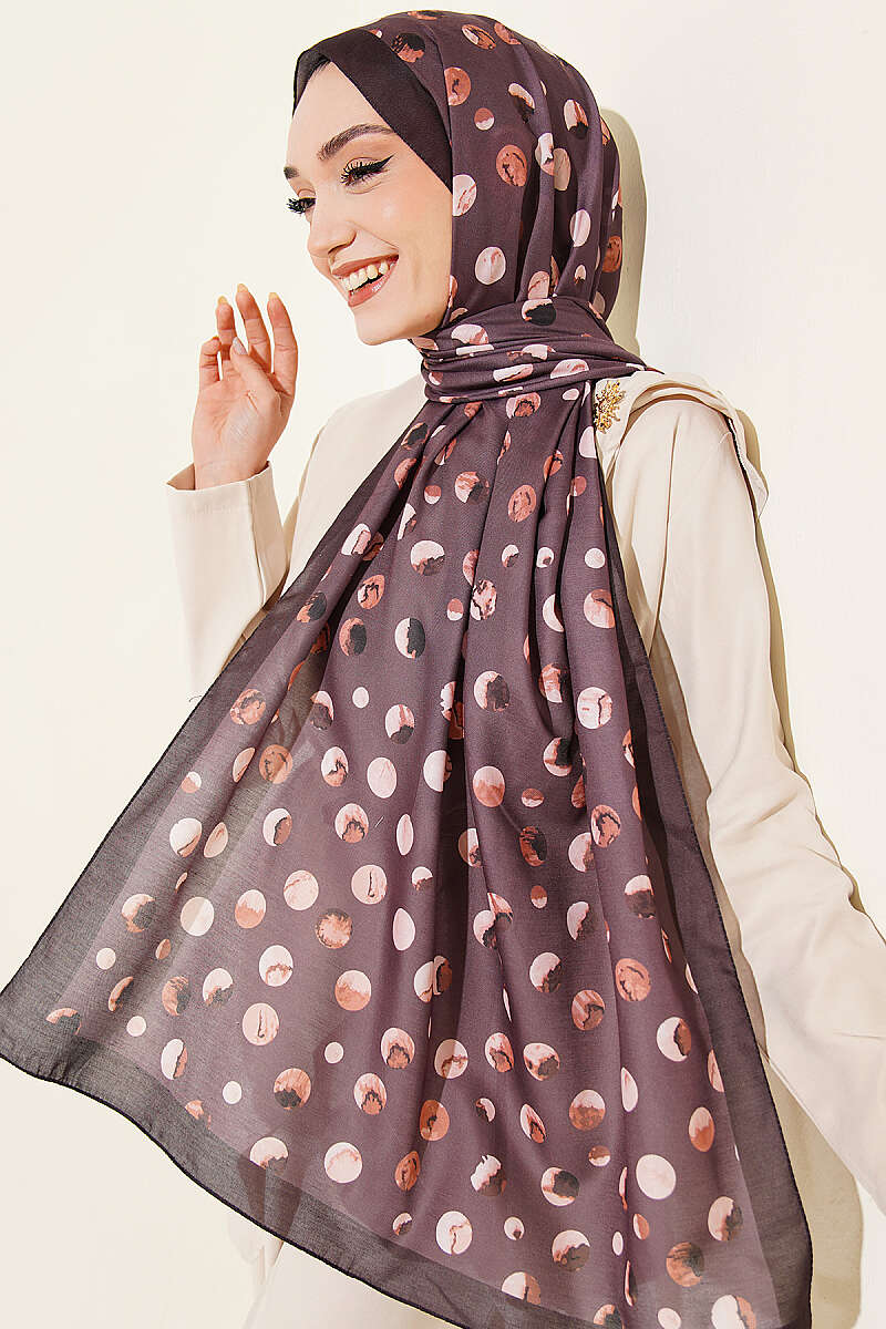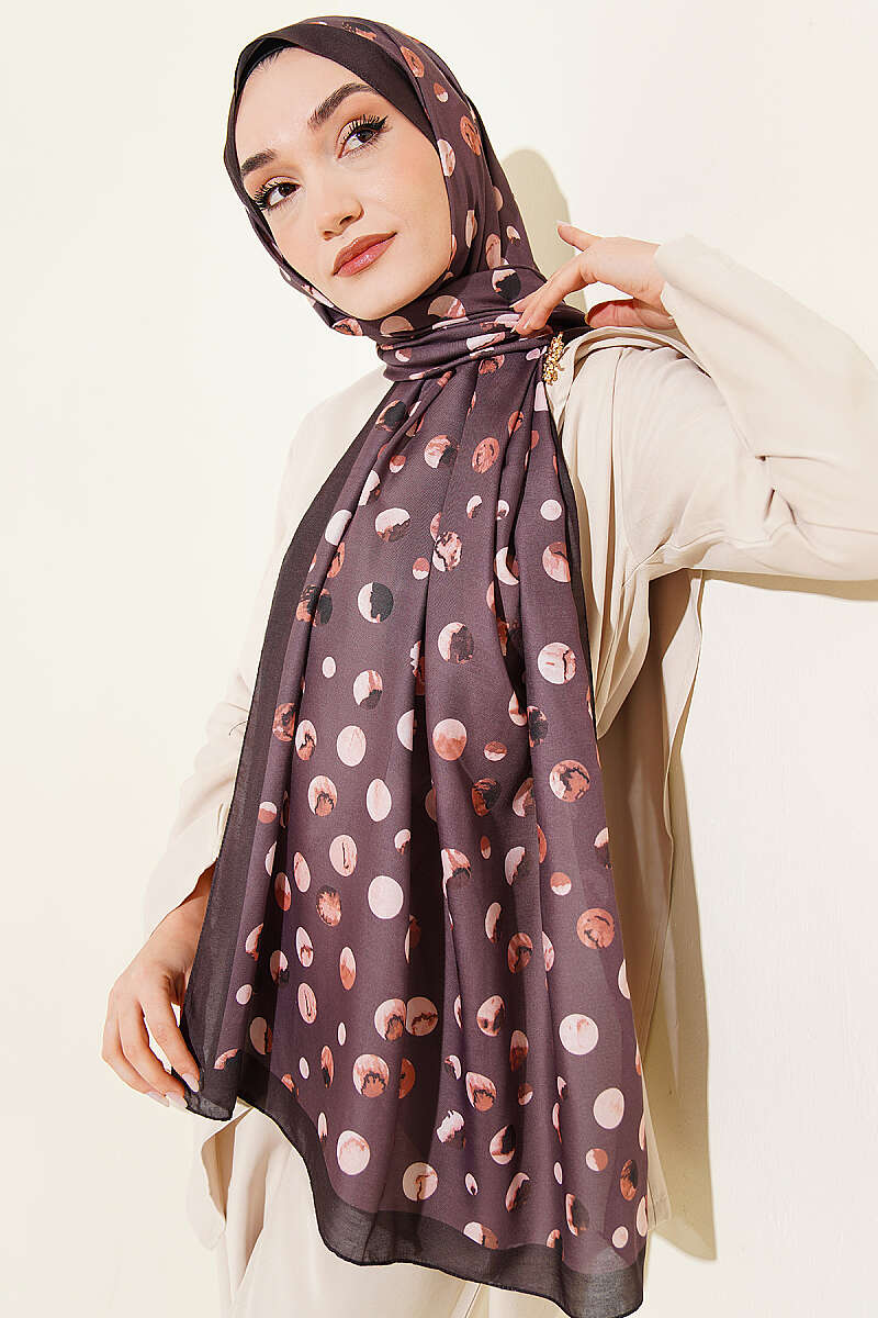 Ebruli Puantiye Desen Şal Acı Kahve