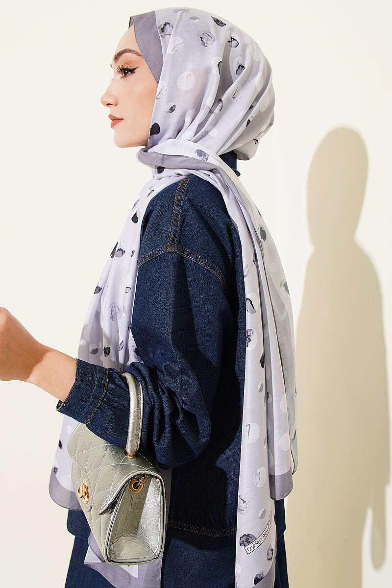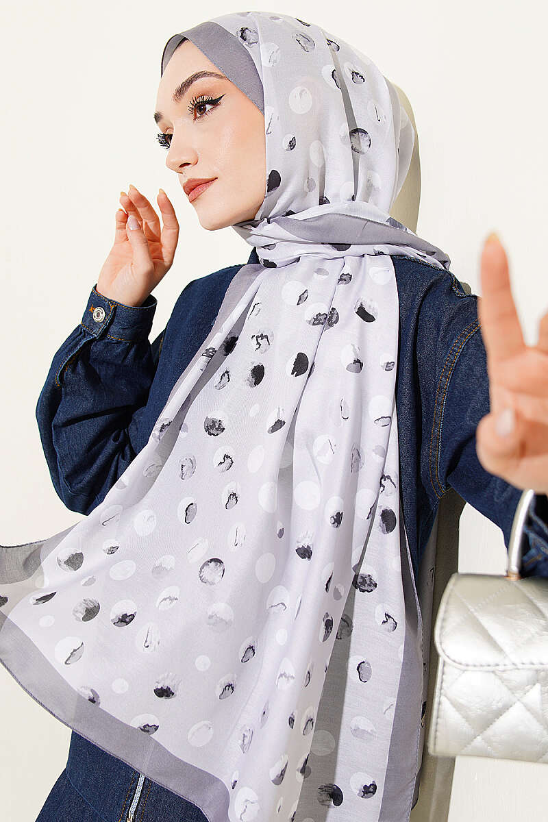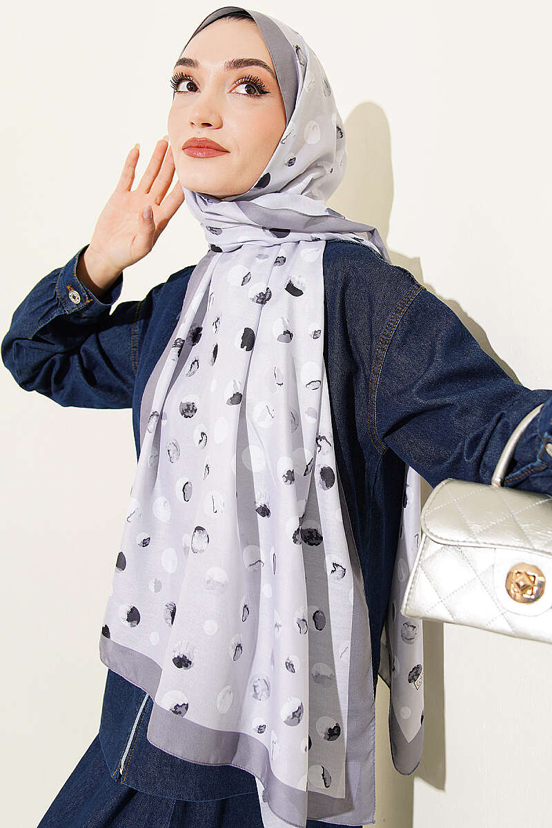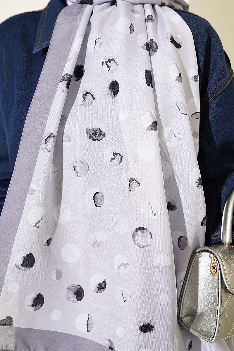 Ebruli Puantiye Desen Şal Gri