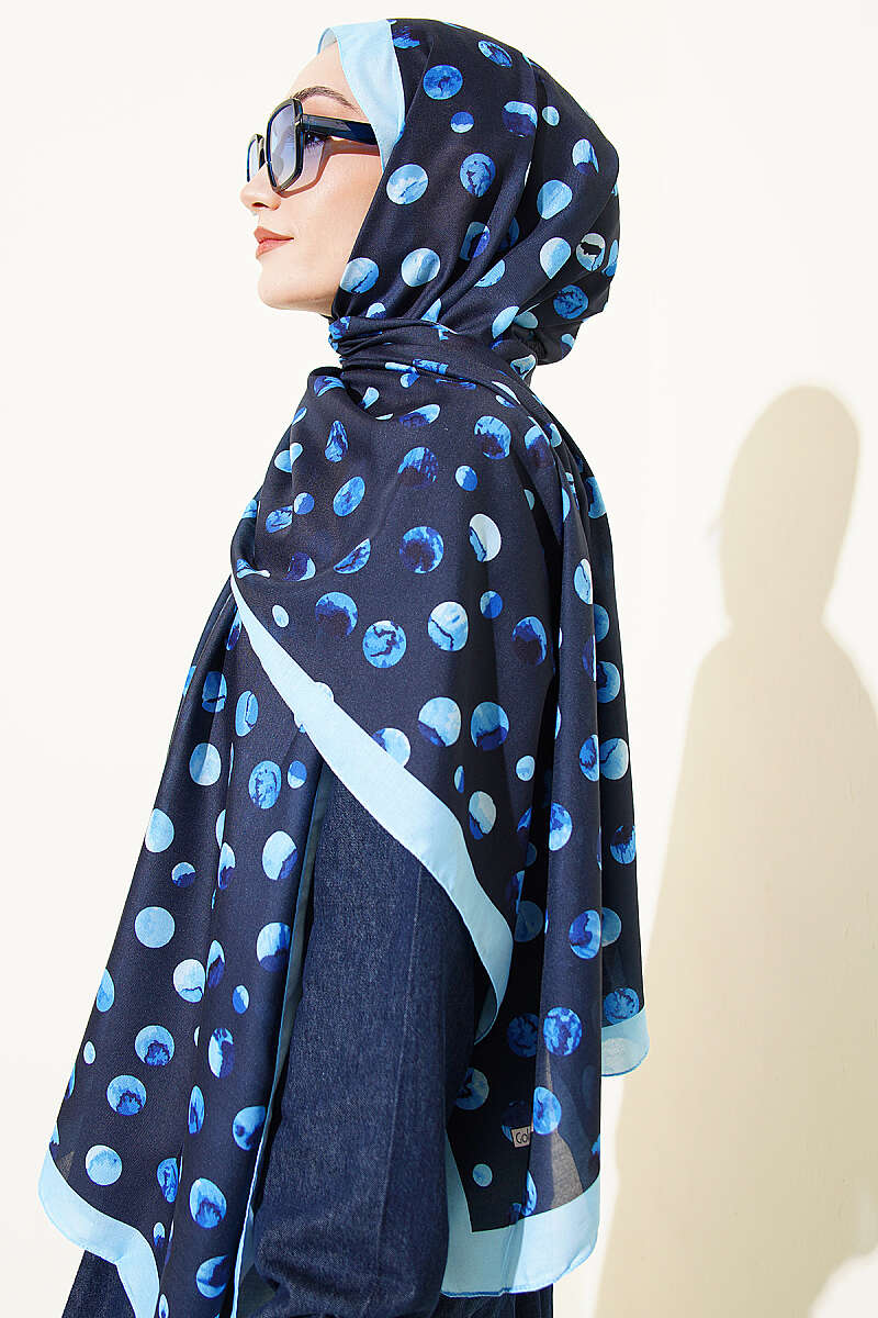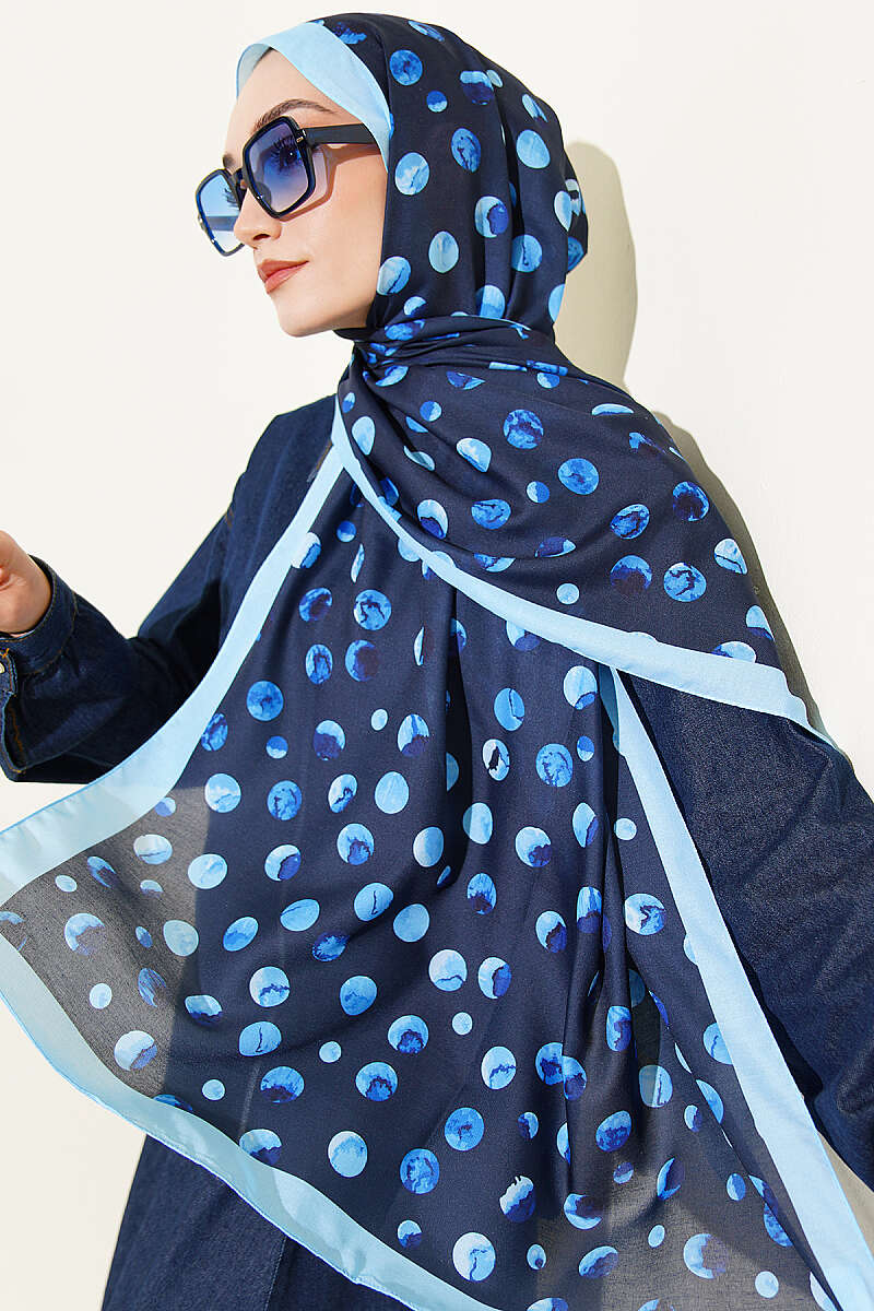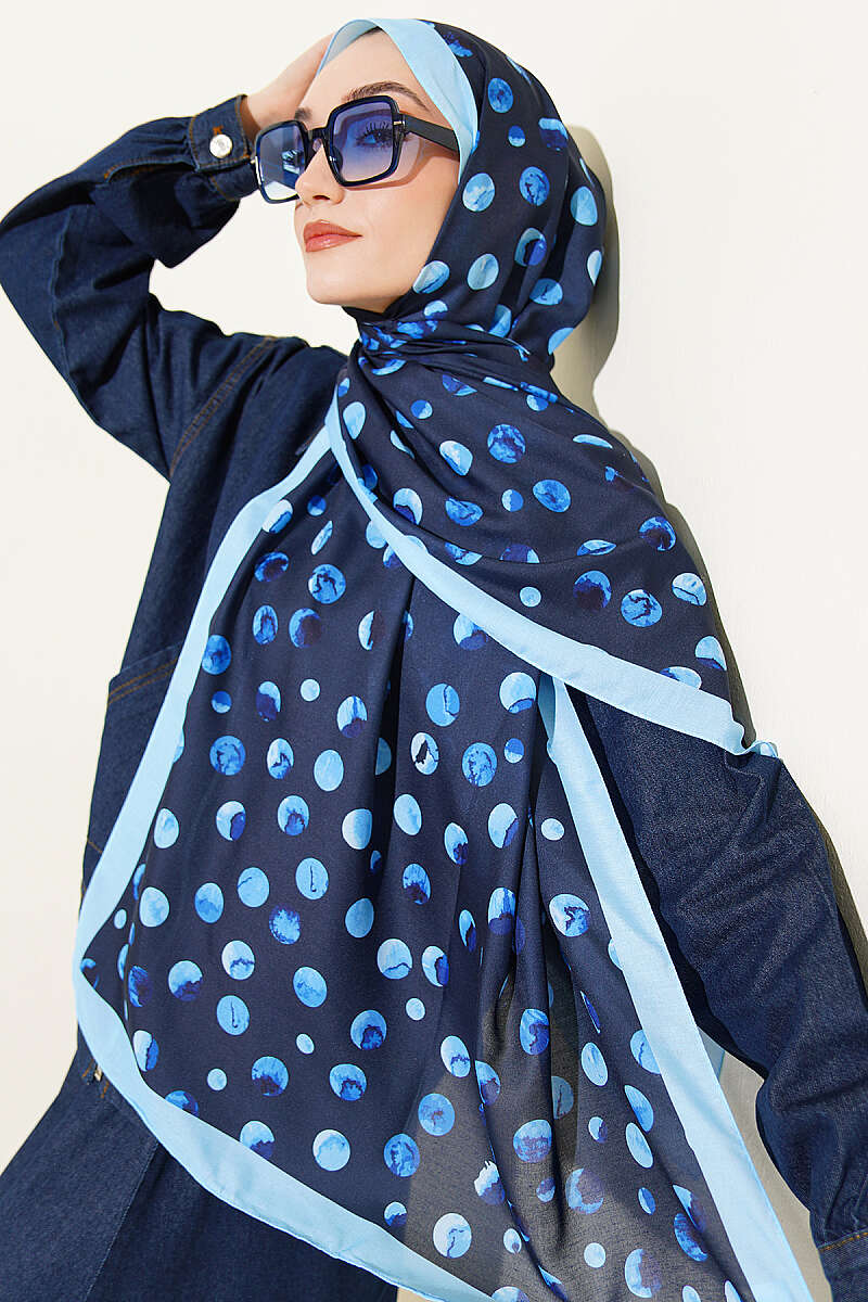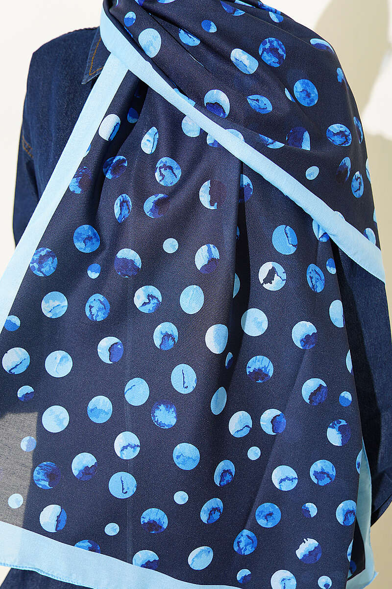 Karışık Desen Bambu Kraş Ayda Eşarp Mavi