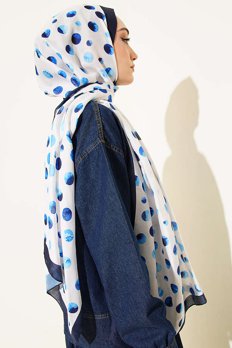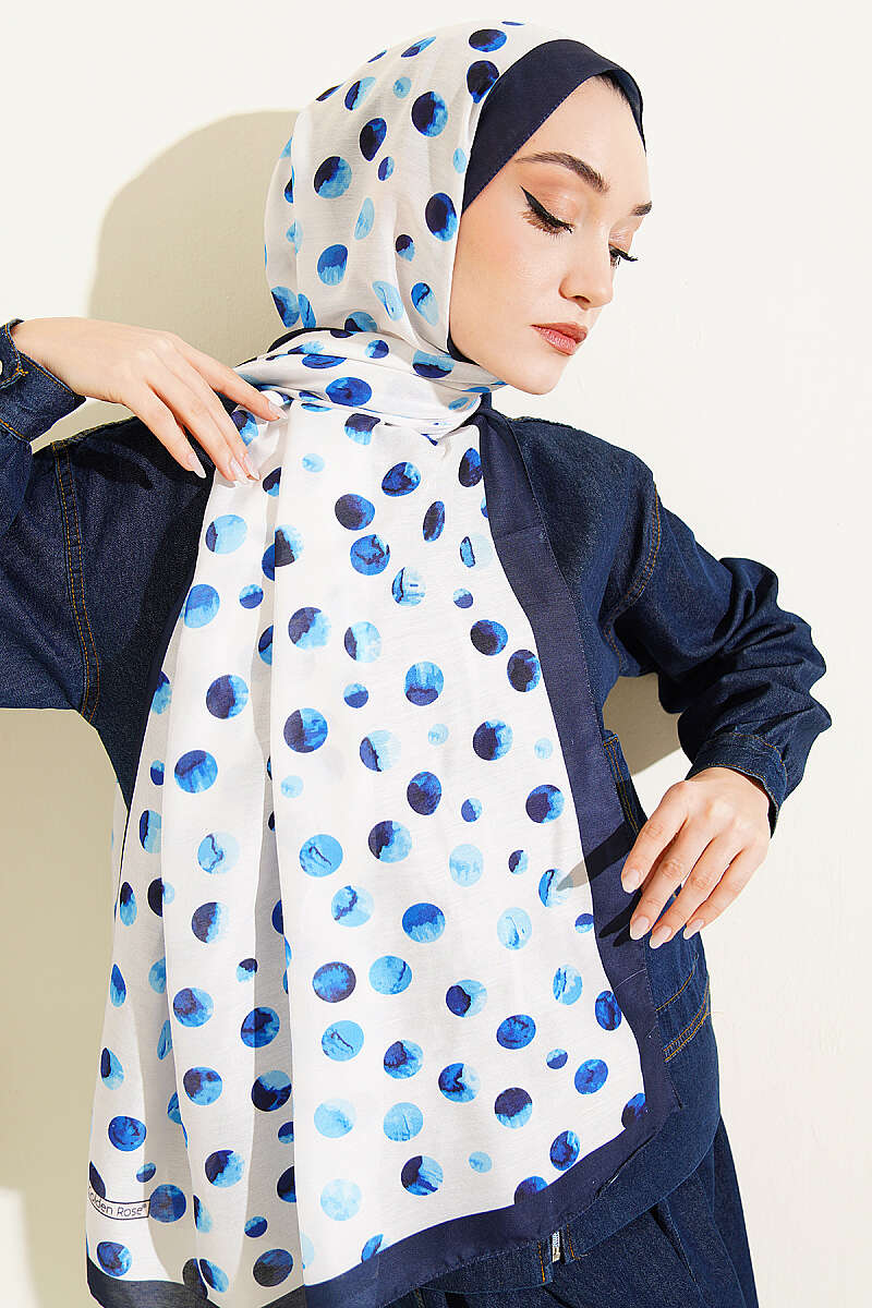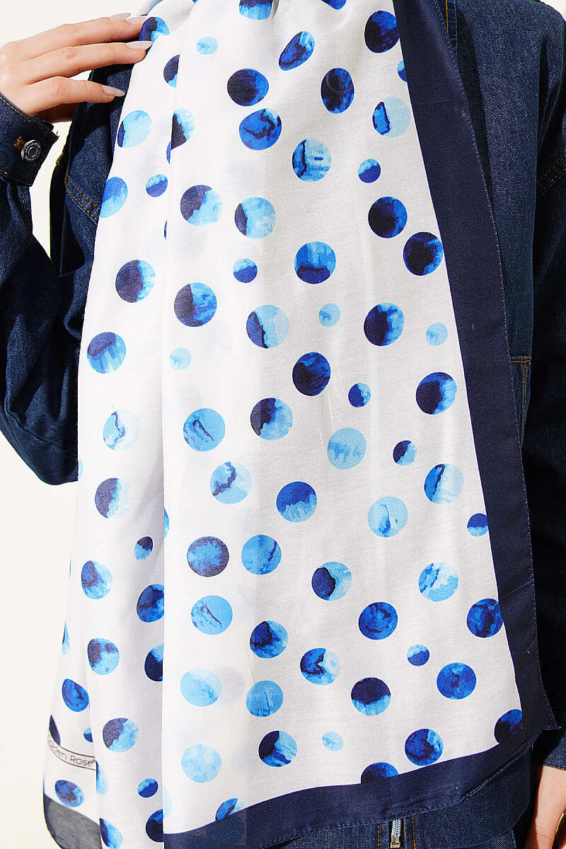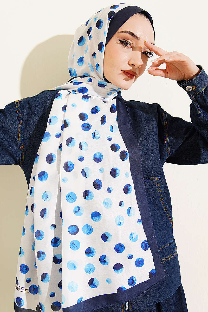 Ebruli Puantiye Desen Şal Lacivert Ekru