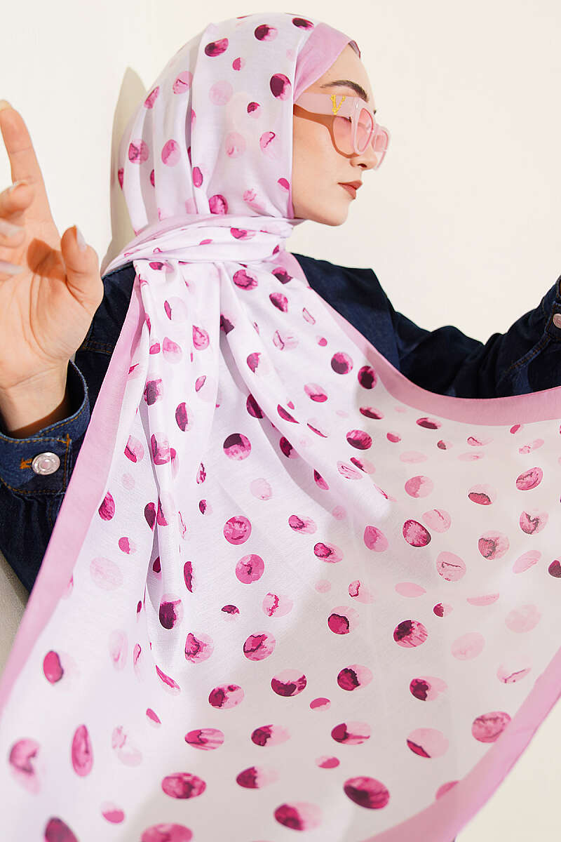 Karışık Desen Bambu Kraş Ayda Eşarp Magenta