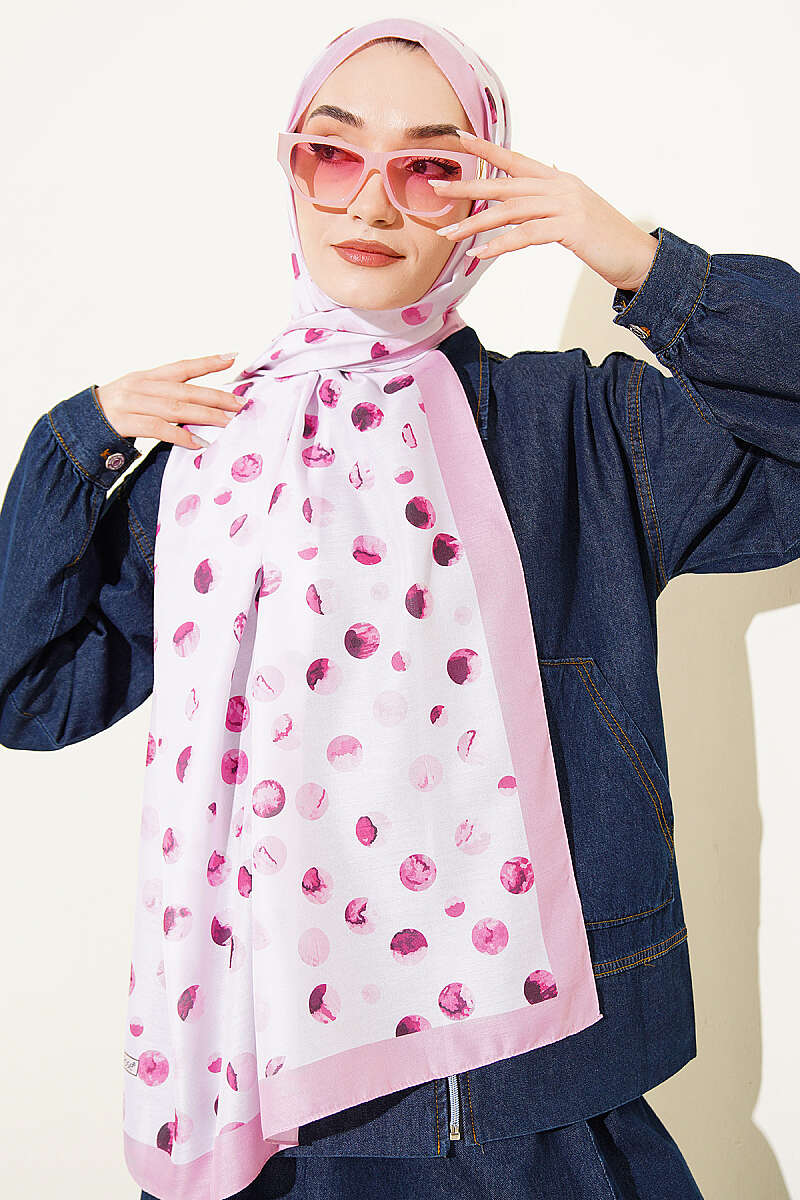 Karışık Desen Bambu Kraş Ayda Eşarp Pudra