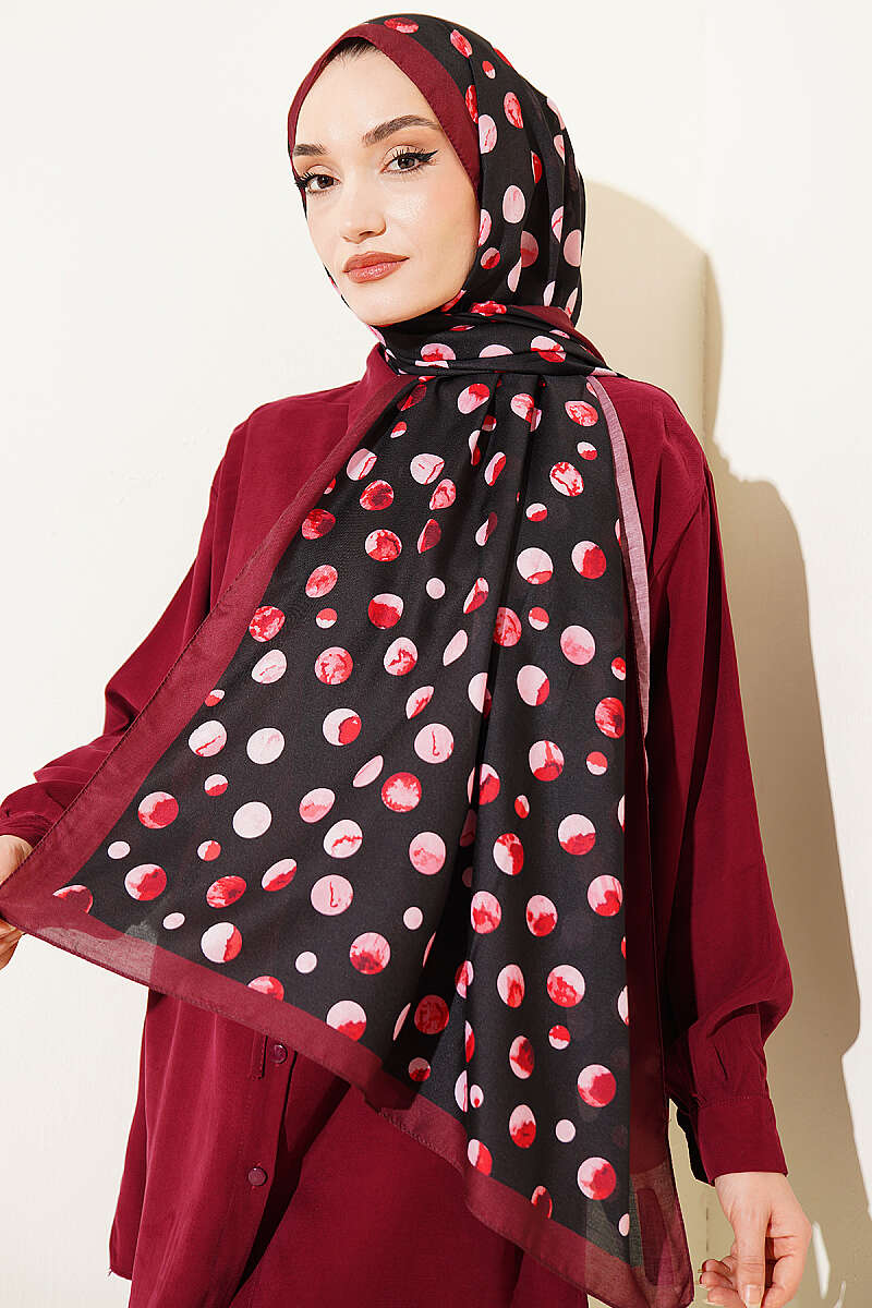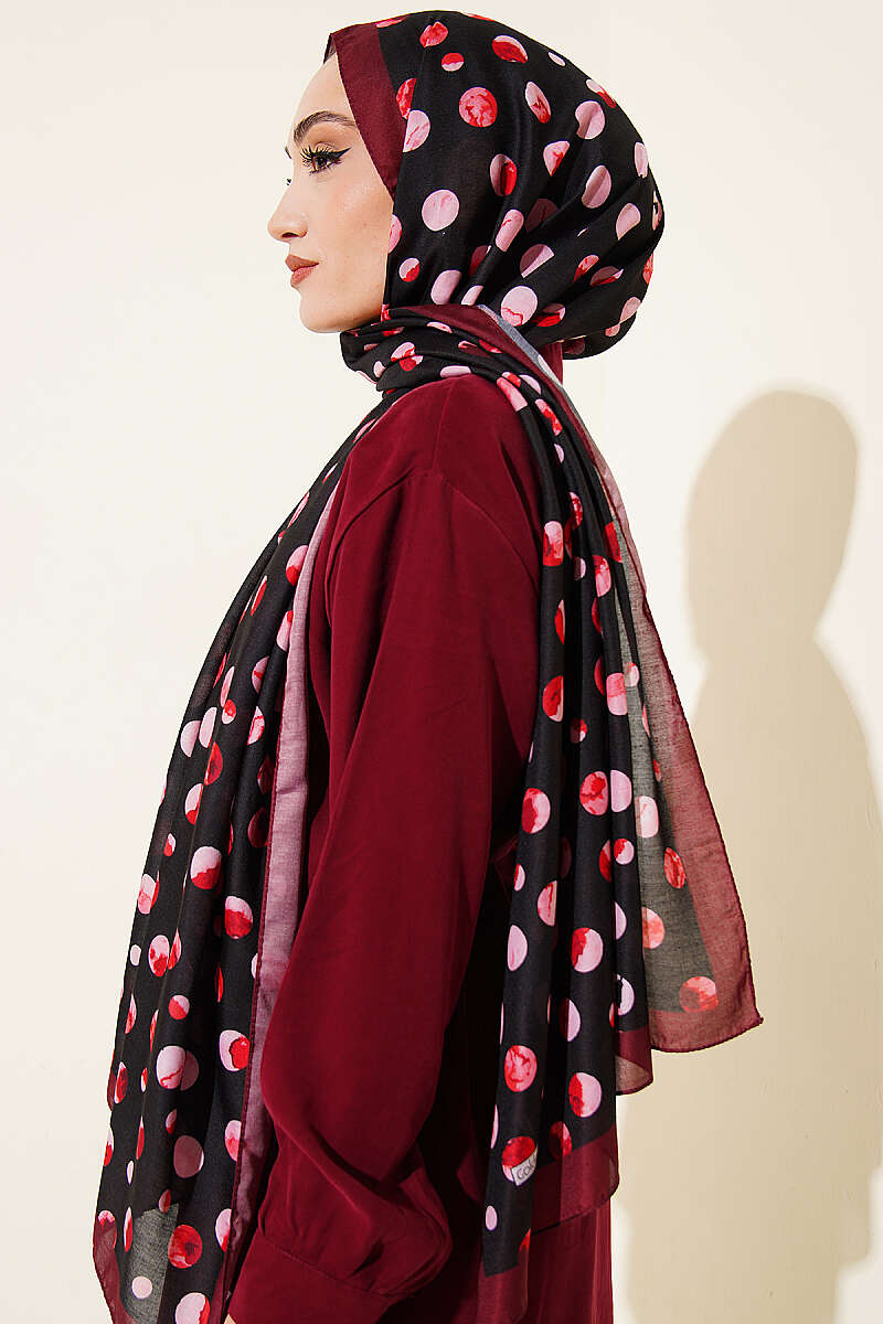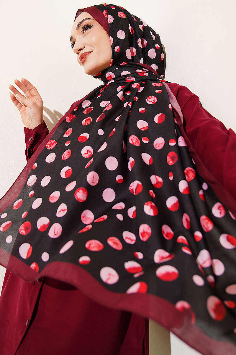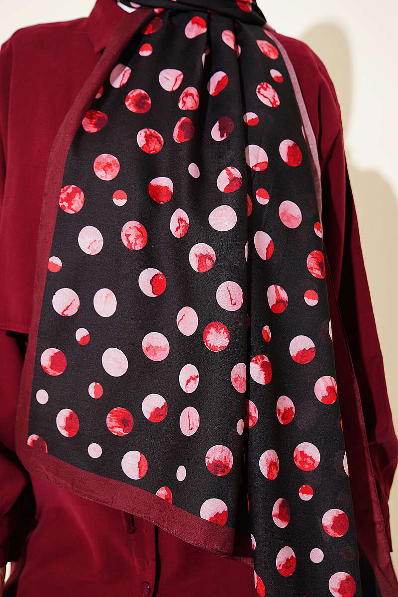 Ebruli Puantiye Desen Şal Siyah Bordo