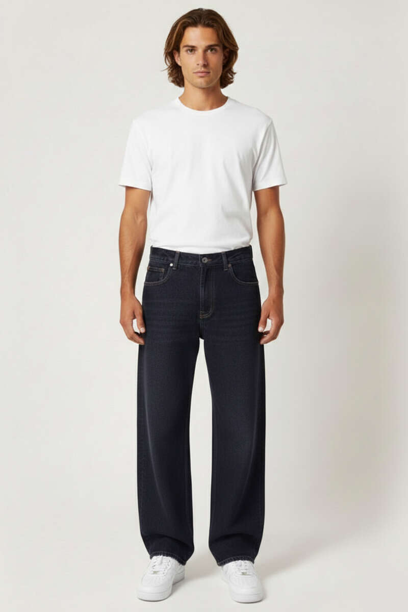 Efektli Baggy Erkek Kot Pantolon Koyu Mavi