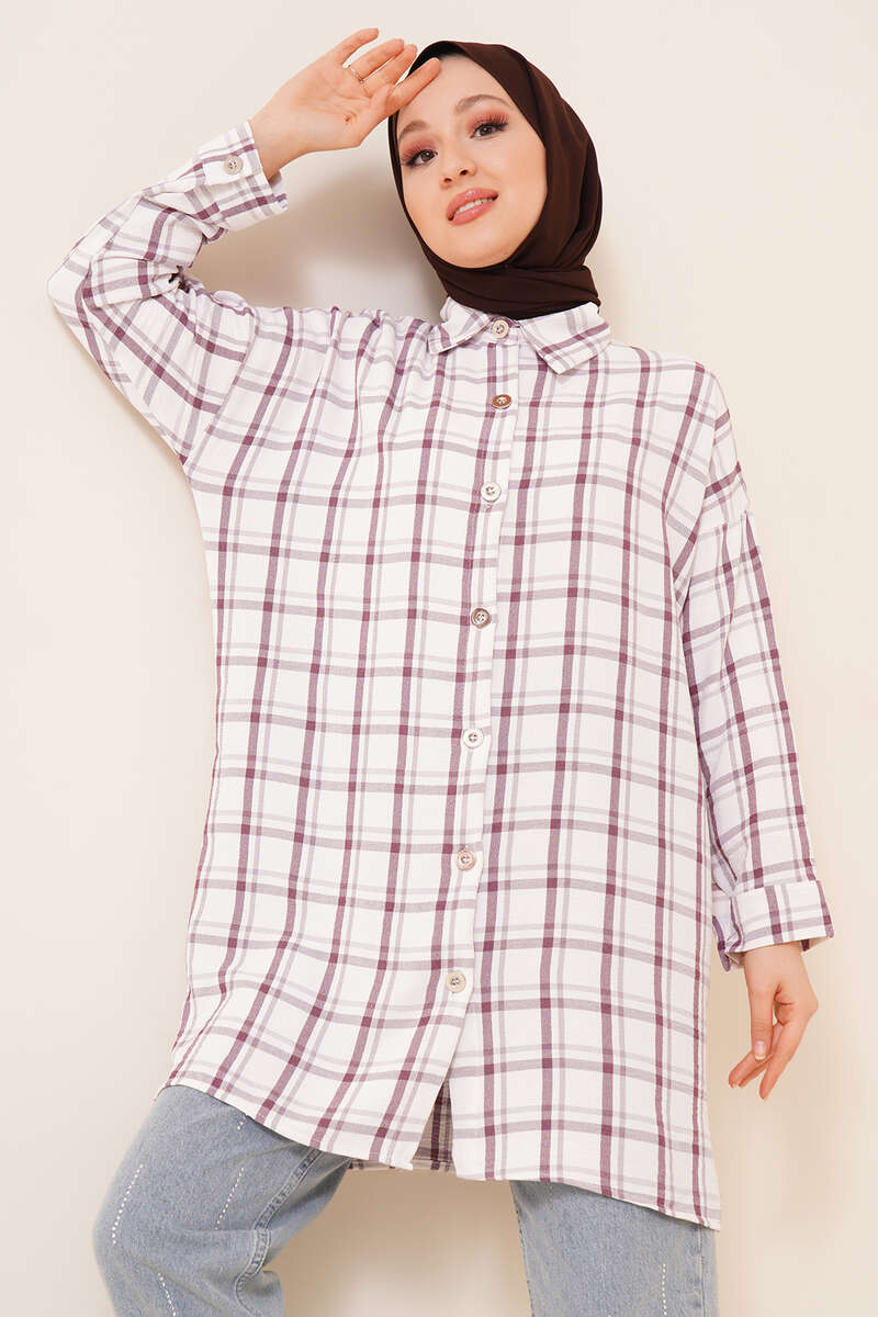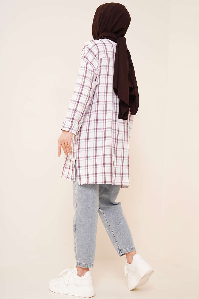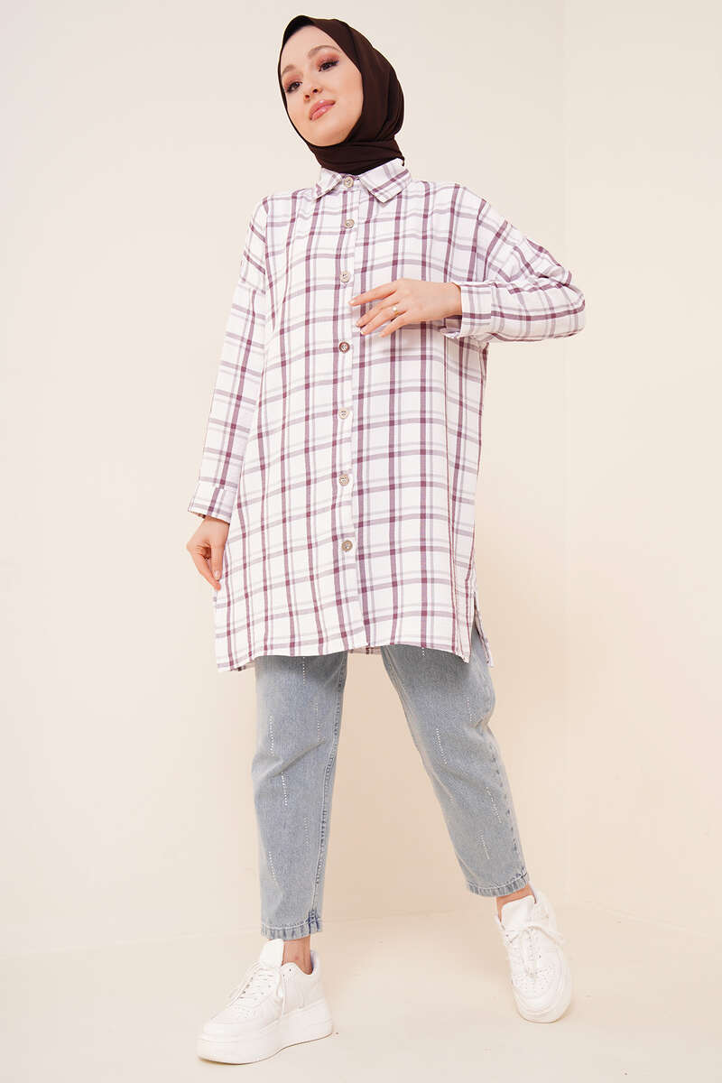 Ekose Desen Ayrobin Gömlek Lila