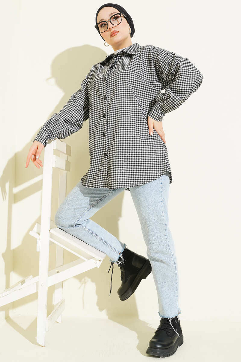 Atkı Detaylı Ekoseli Gömlek Siyah