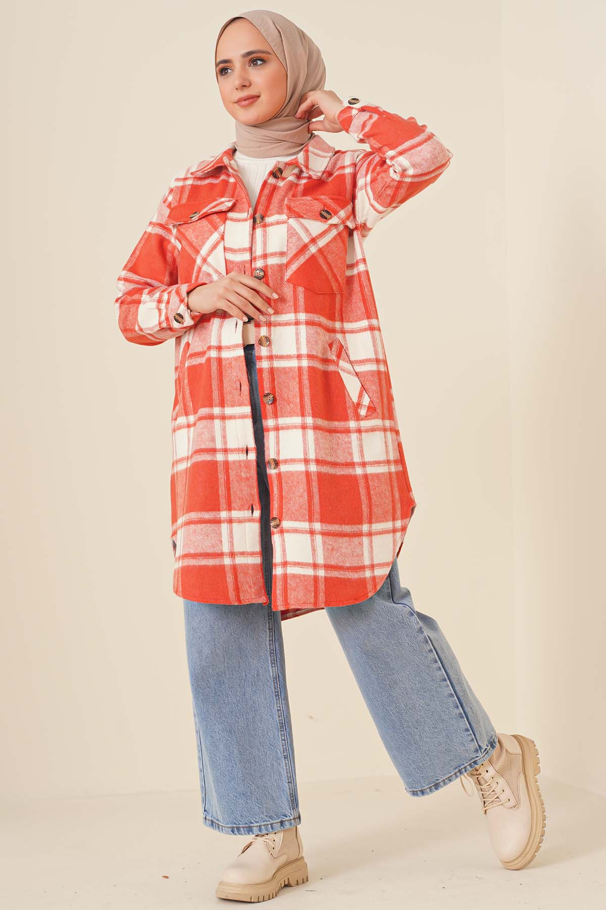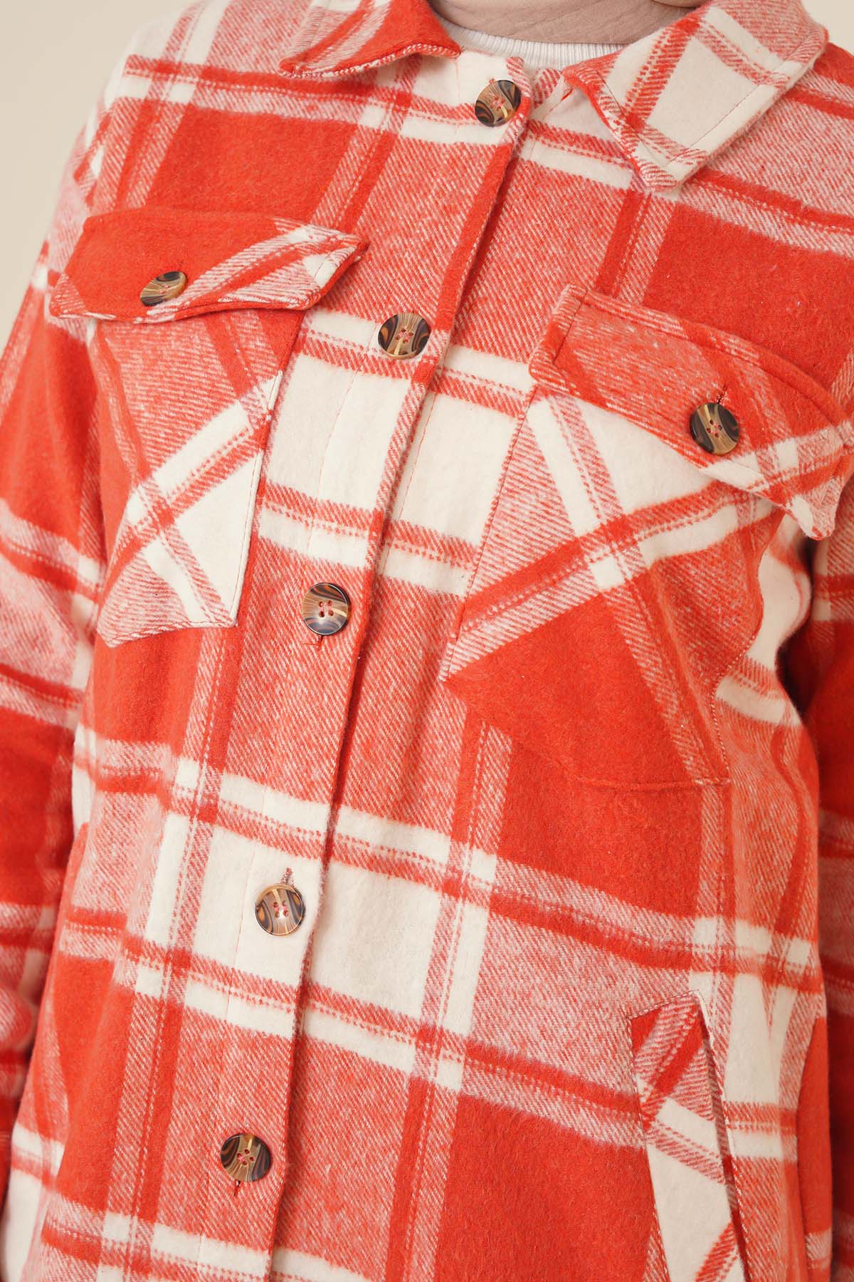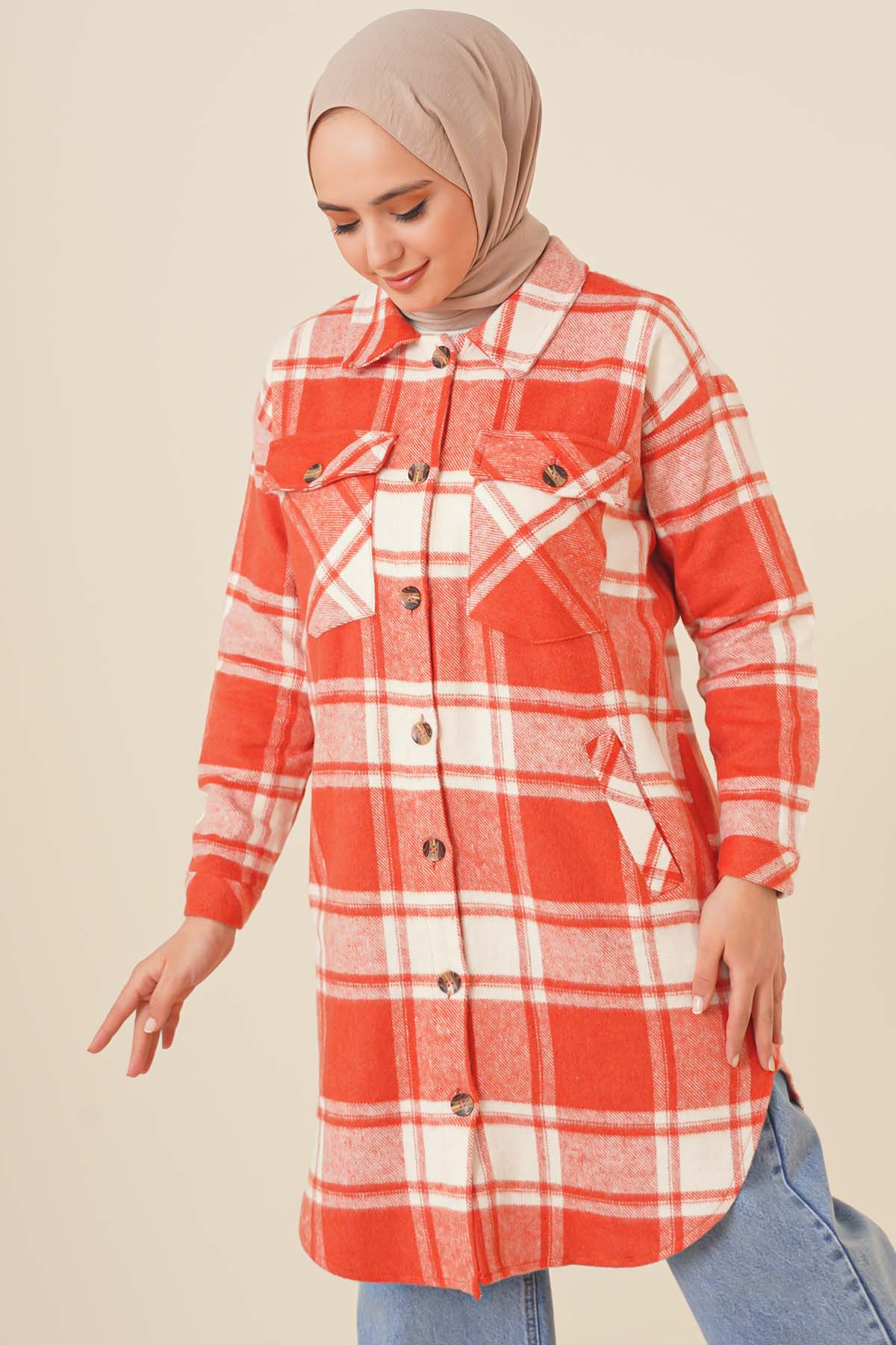 Yeni sezon tuniğimiz şık tasarımıyla sizlerle birlikte. Ekose desendir. Önünde dört cebi vardır. Bu soğuk havalarda her kıyafetinizle rahatlıkla giyebilirsiniz. Farklı renkleri vardır.