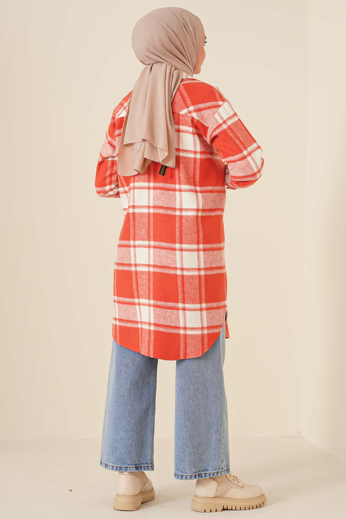 Ekose Desen Uzun Tunik Oranj