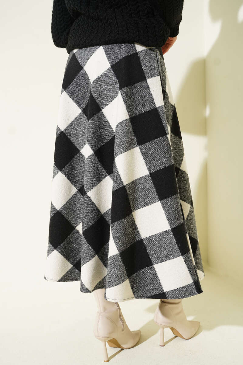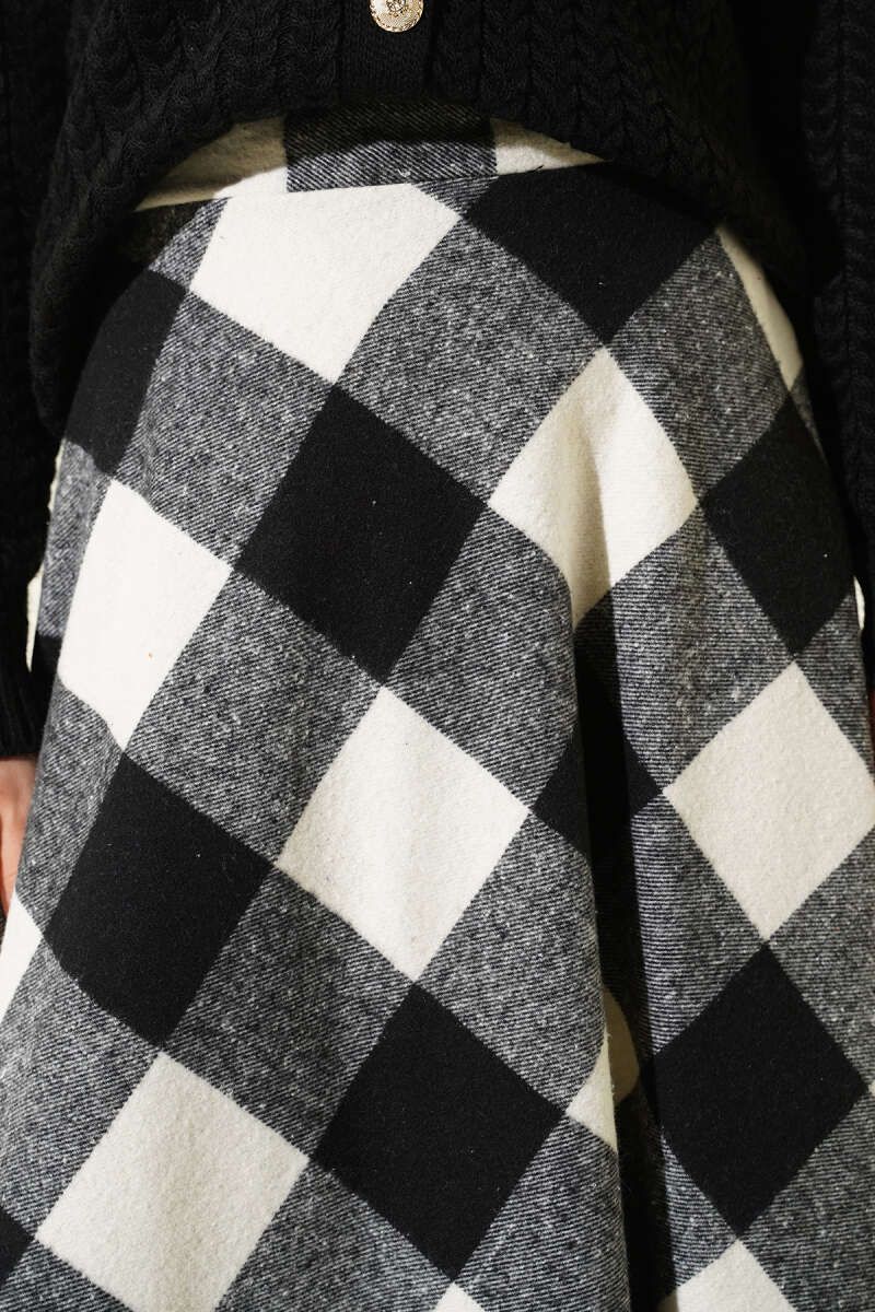 Ekose Desenli Kloş Kaşe Etek Kırmızı