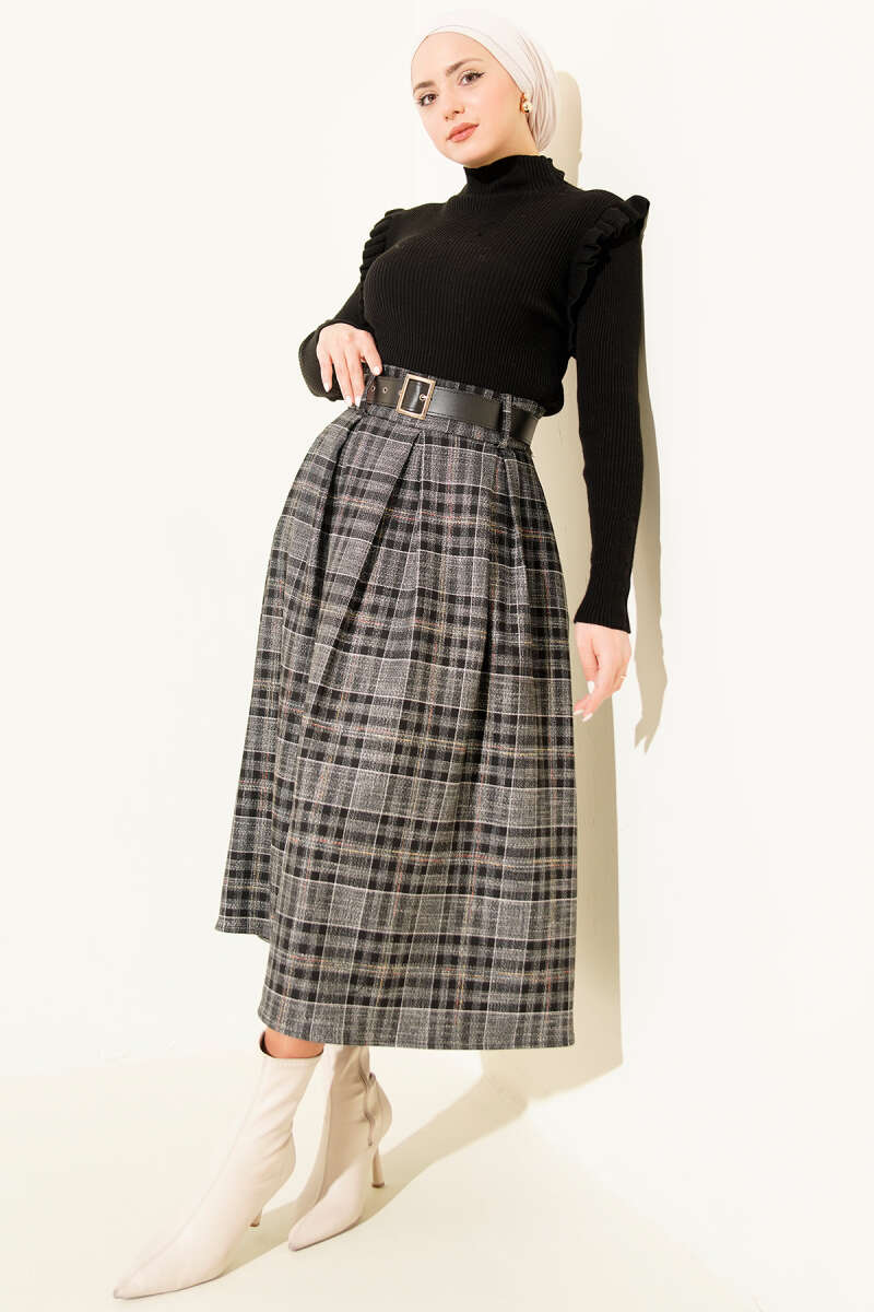 Beli Kemerli Lastikli Pileli Etek Kiremit