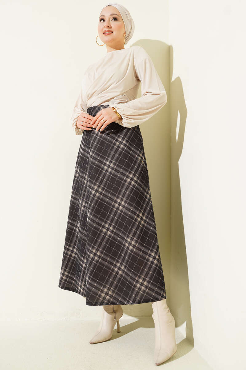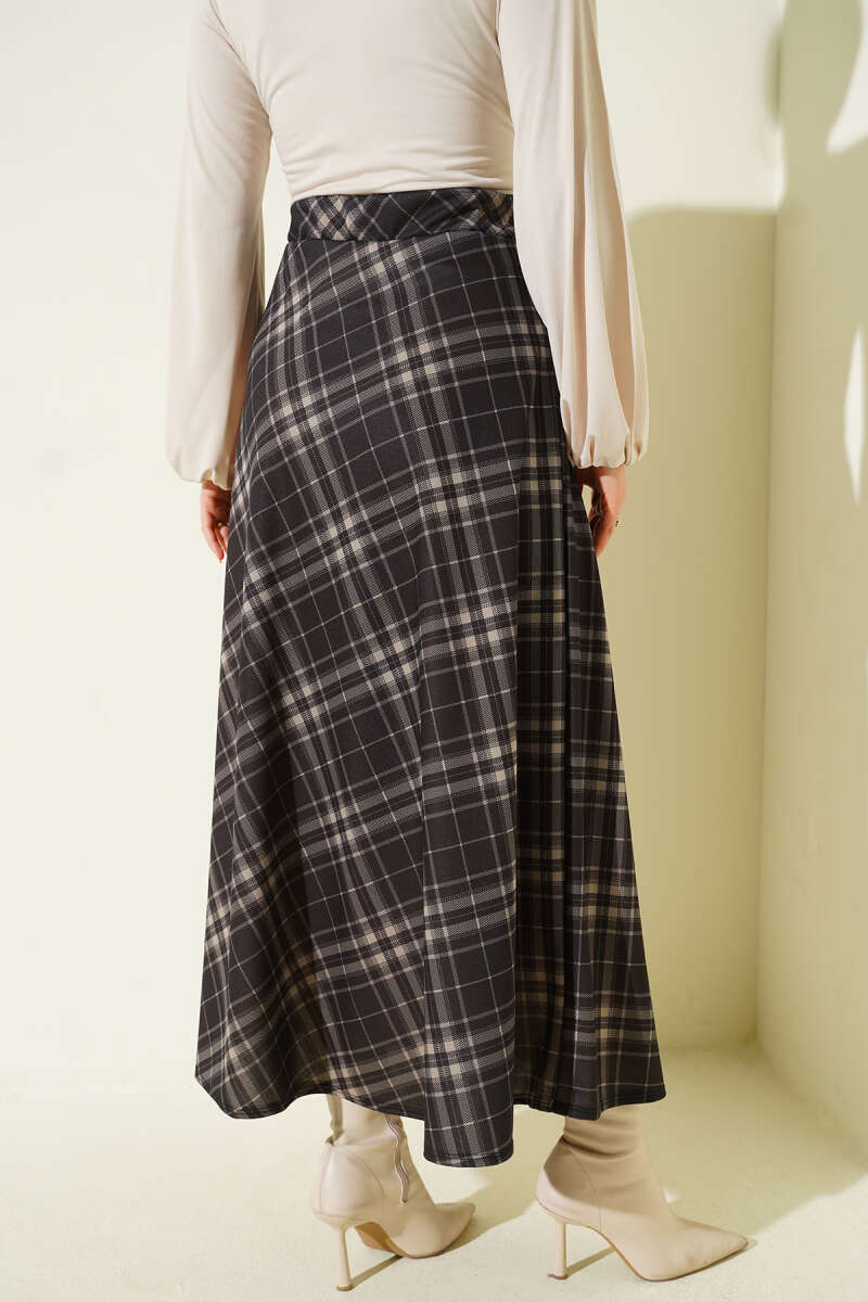 Ekose Desenli Kloş Dabıl Etek Antrasit