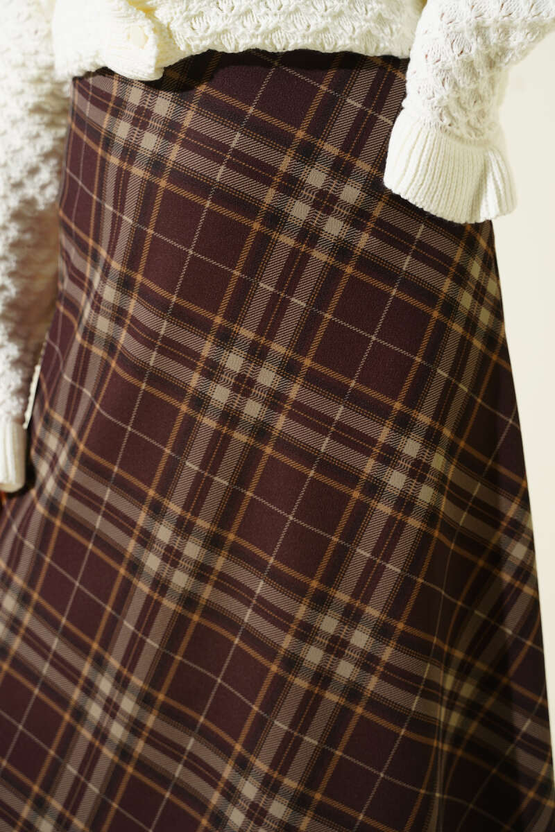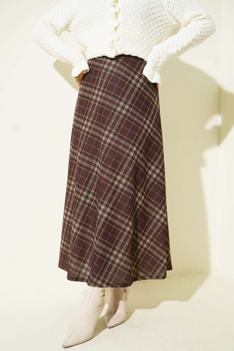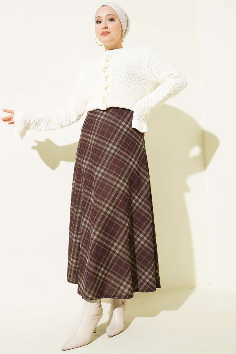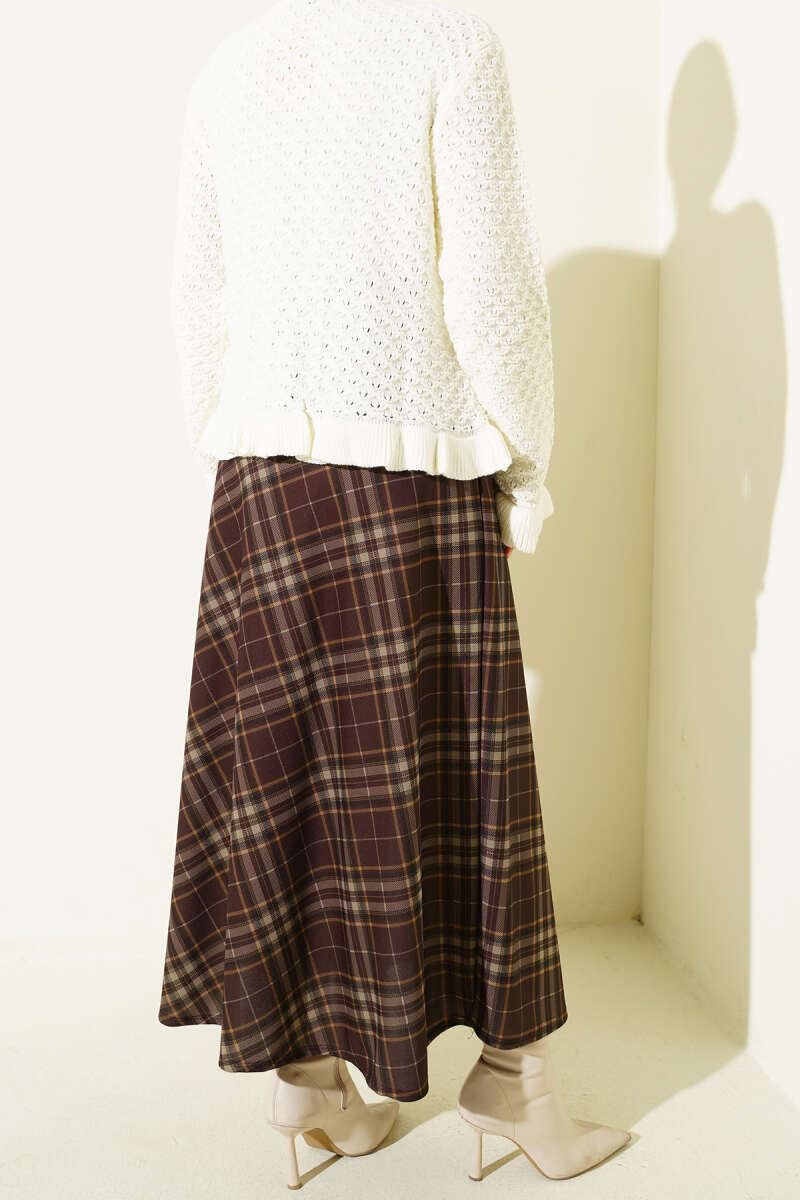 Ekose Desenli Kloş Dabıl Etek Acı Kahve