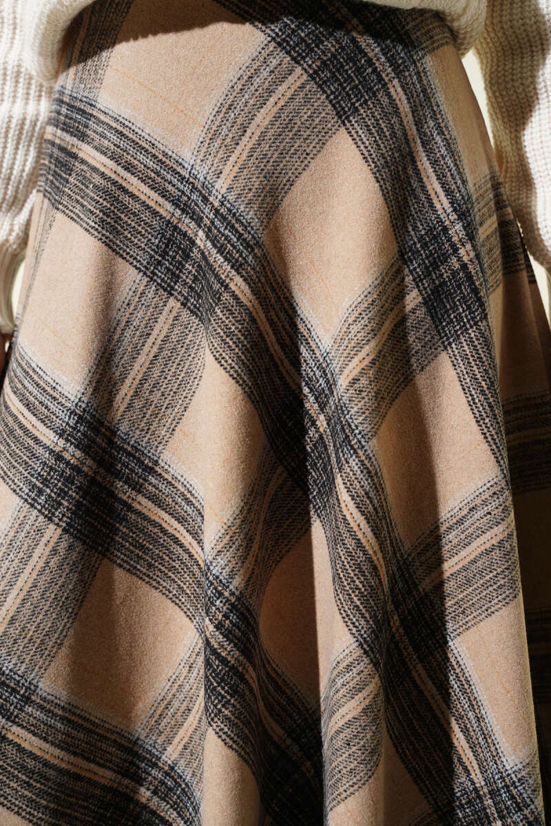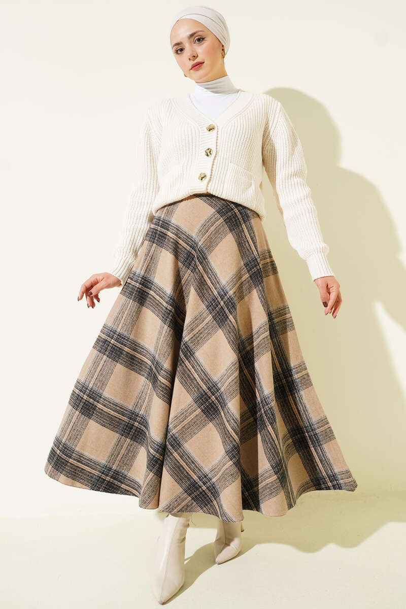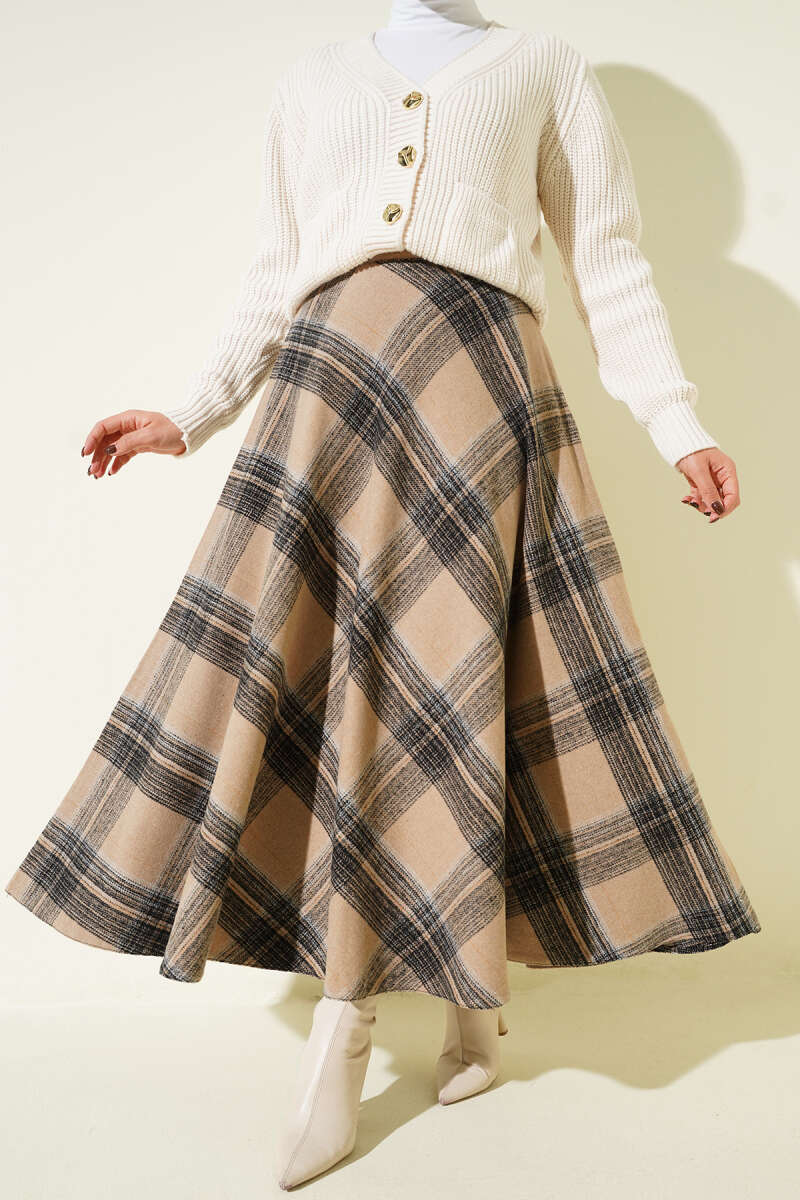 Ekose Desenli Kloş Kaşe Etek Siyah