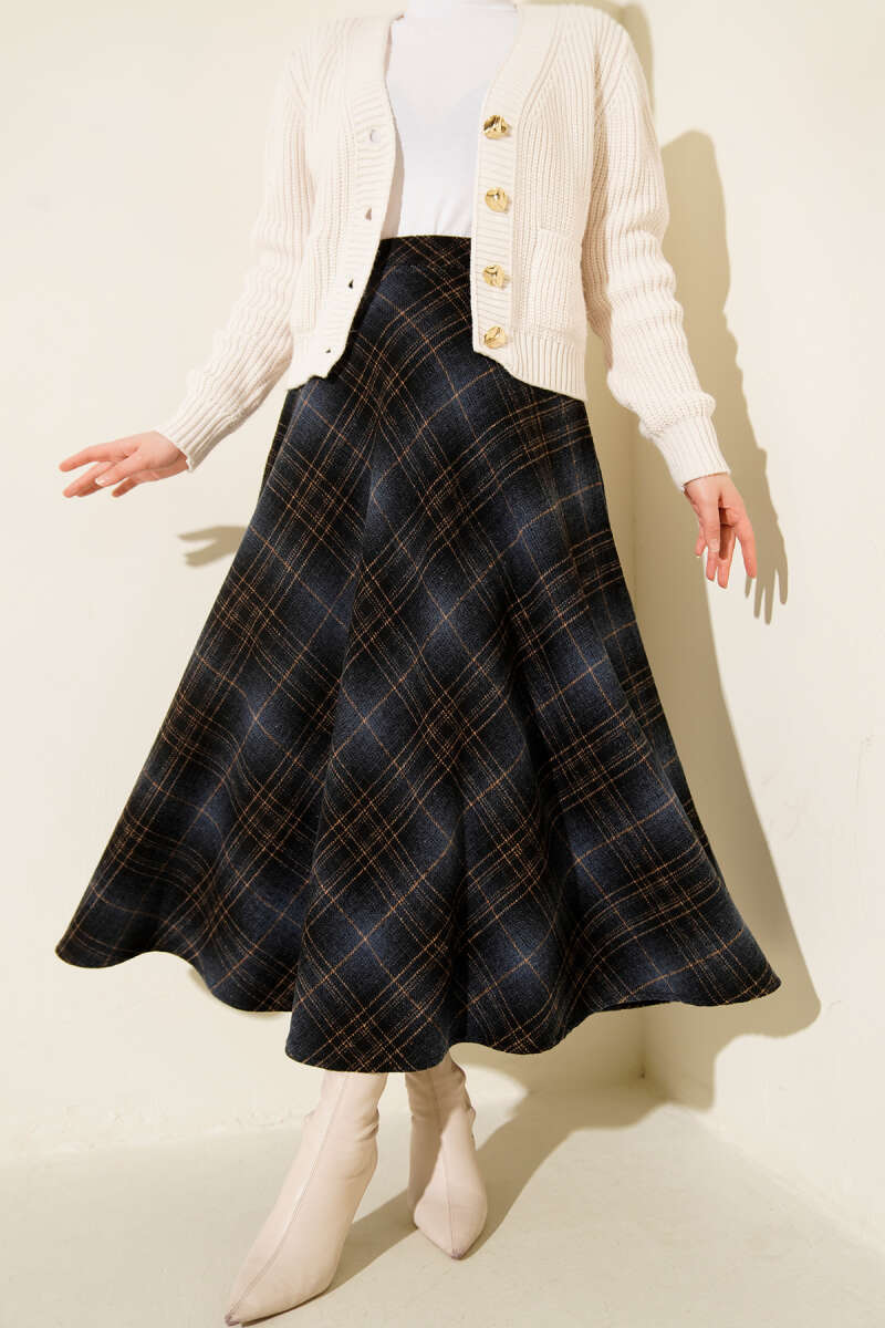 Bel Lastikli Ekoseli Scuba Etek Lacivert