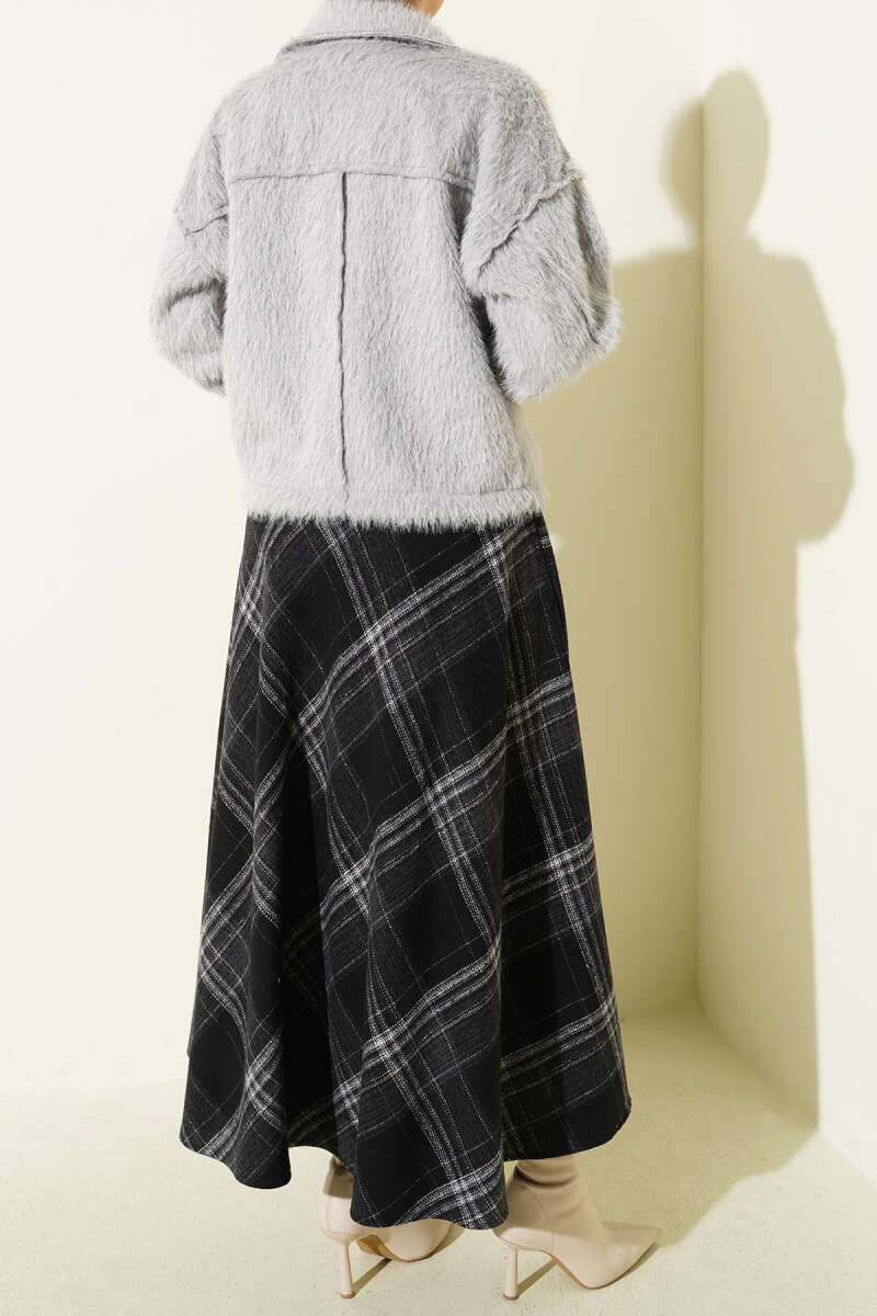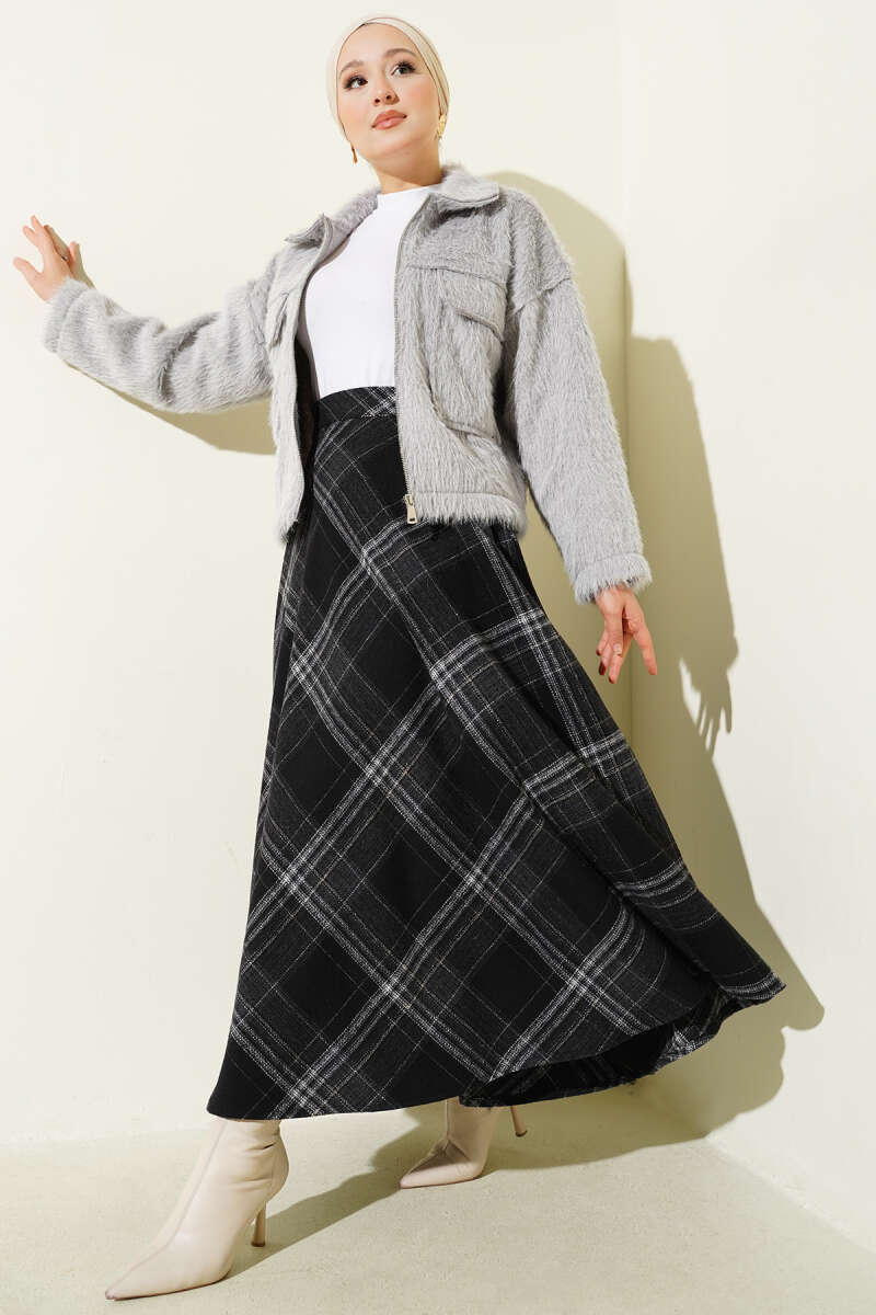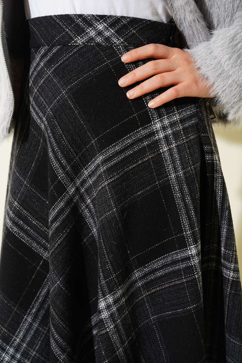 Ekose Desenli Kloş Kaşe Etek Lacivert