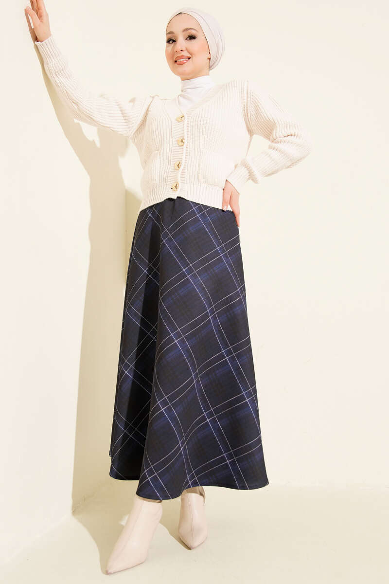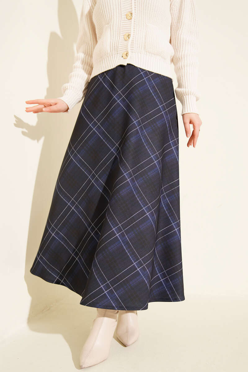 Fırfırlı Pileli Bel Lastikli Etek Lacivert