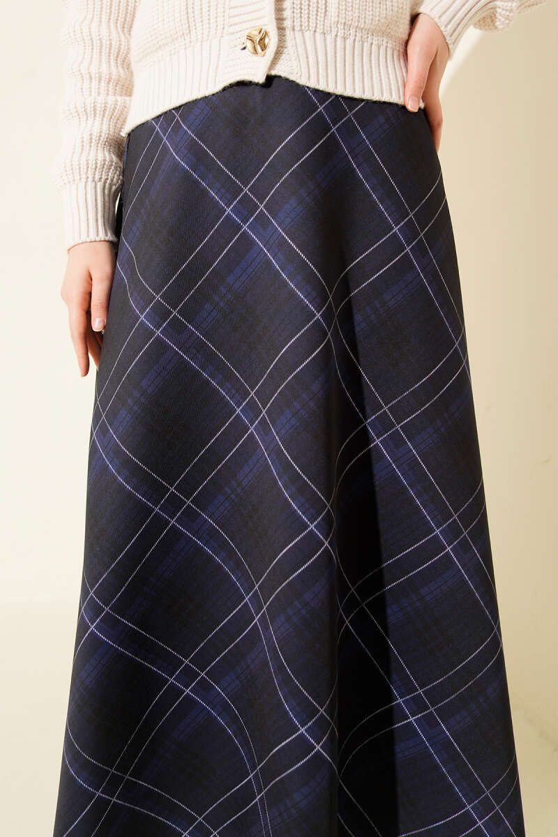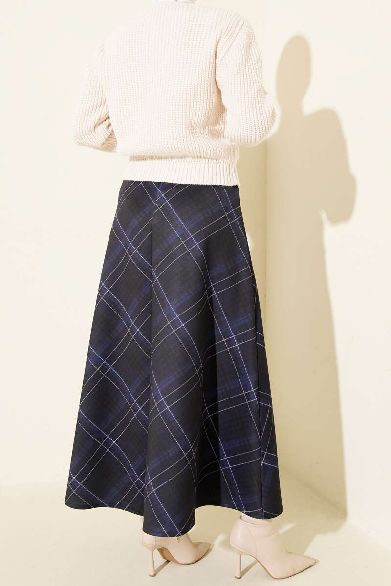 Kemer Aksesuarlı Ekoseli Etek Bordo