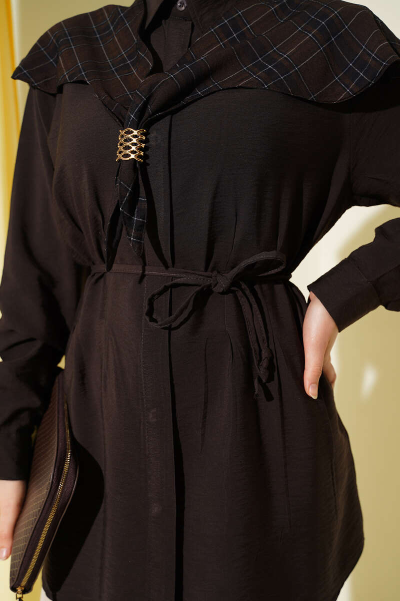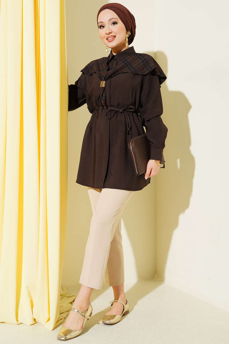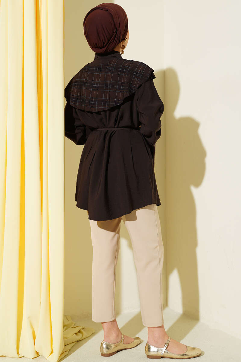Ekose İzci Yakalı Gömlek Acı Kahve