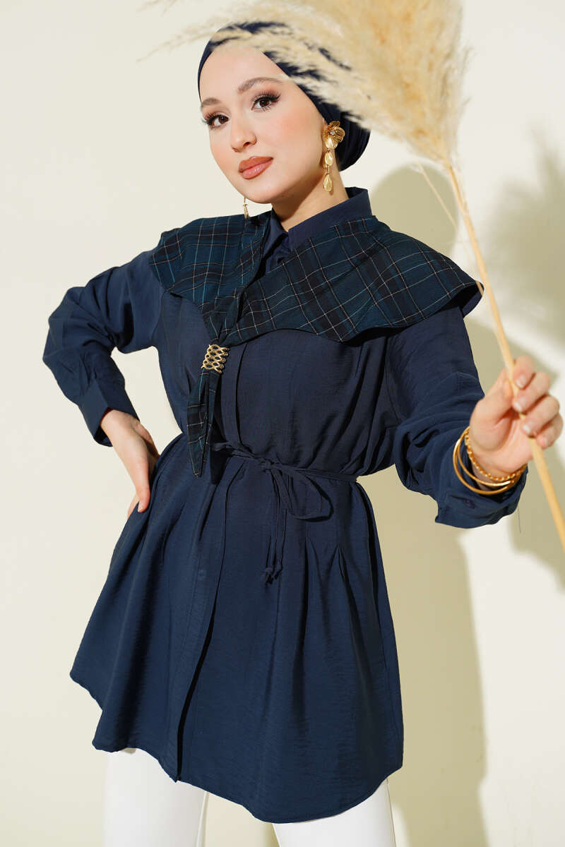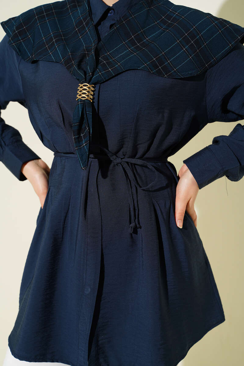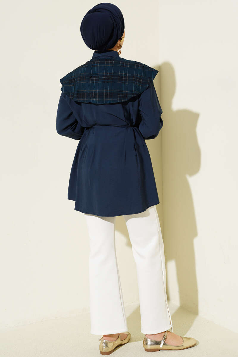 Ekose İzci Yakalı Gömlek Lacivert