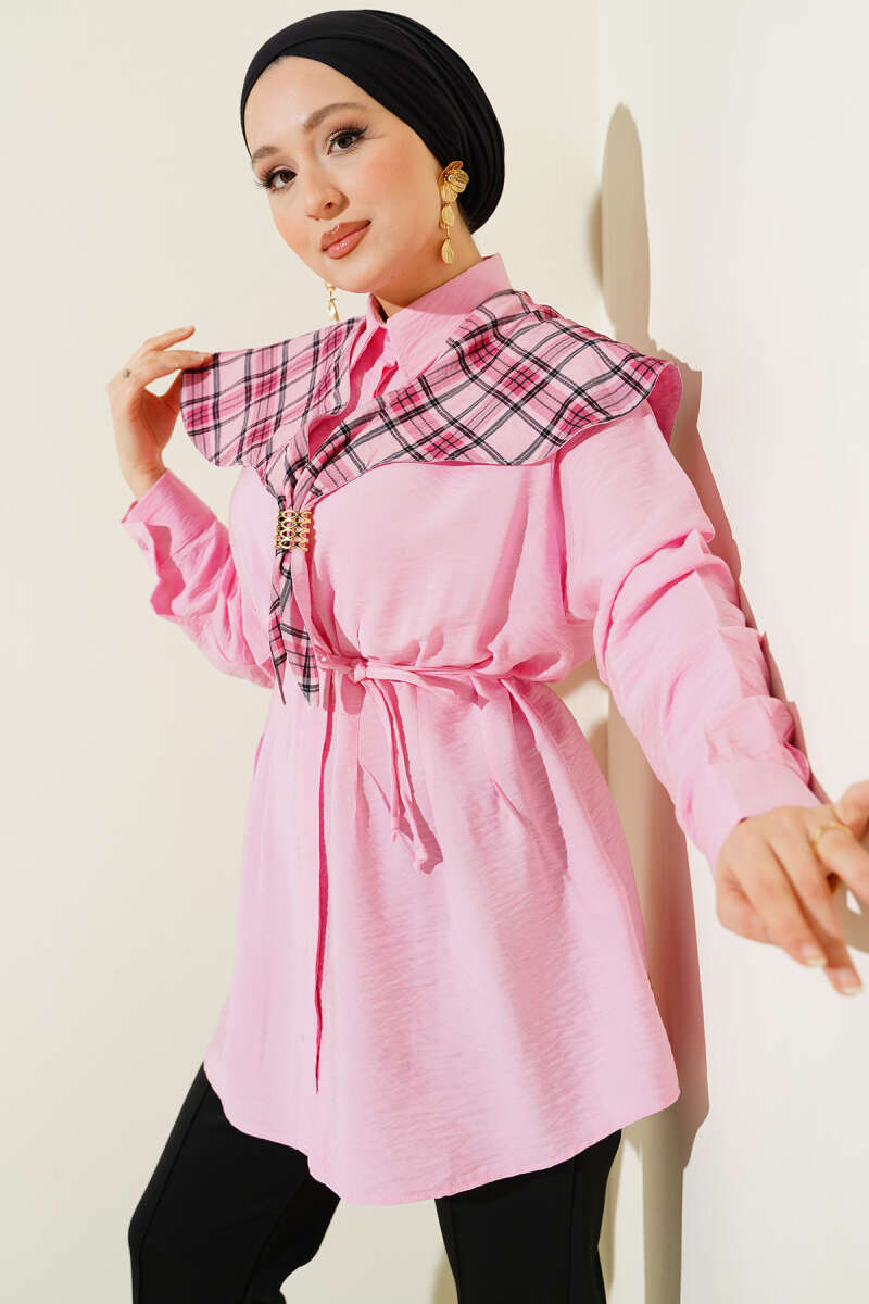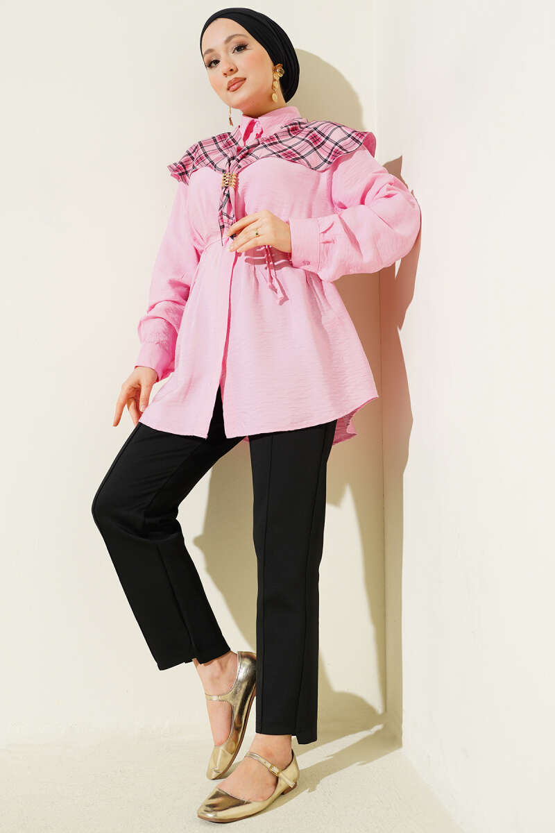 Metal Düğmeli Omuz Pelerinli Gömlek Pembe