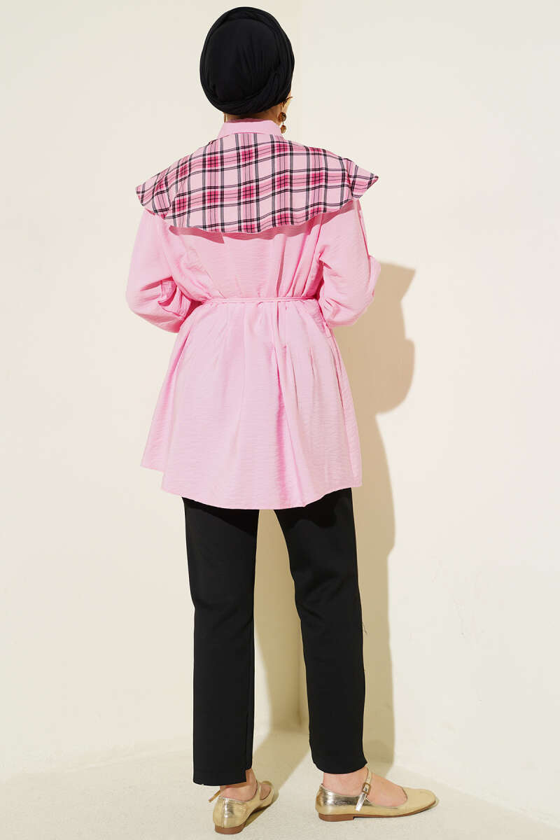 Ekose İzci Yakalı Gömlek Pembe