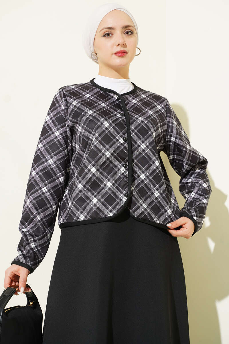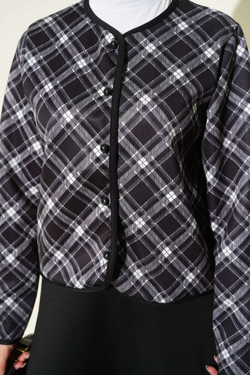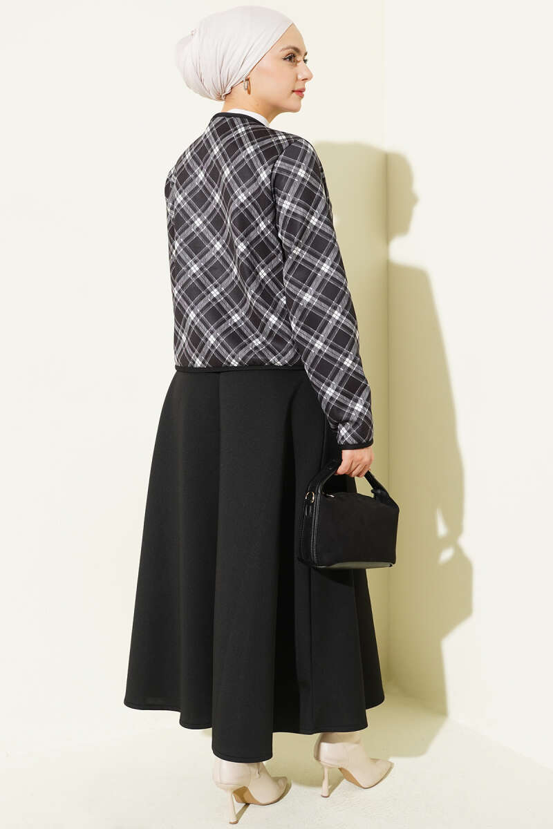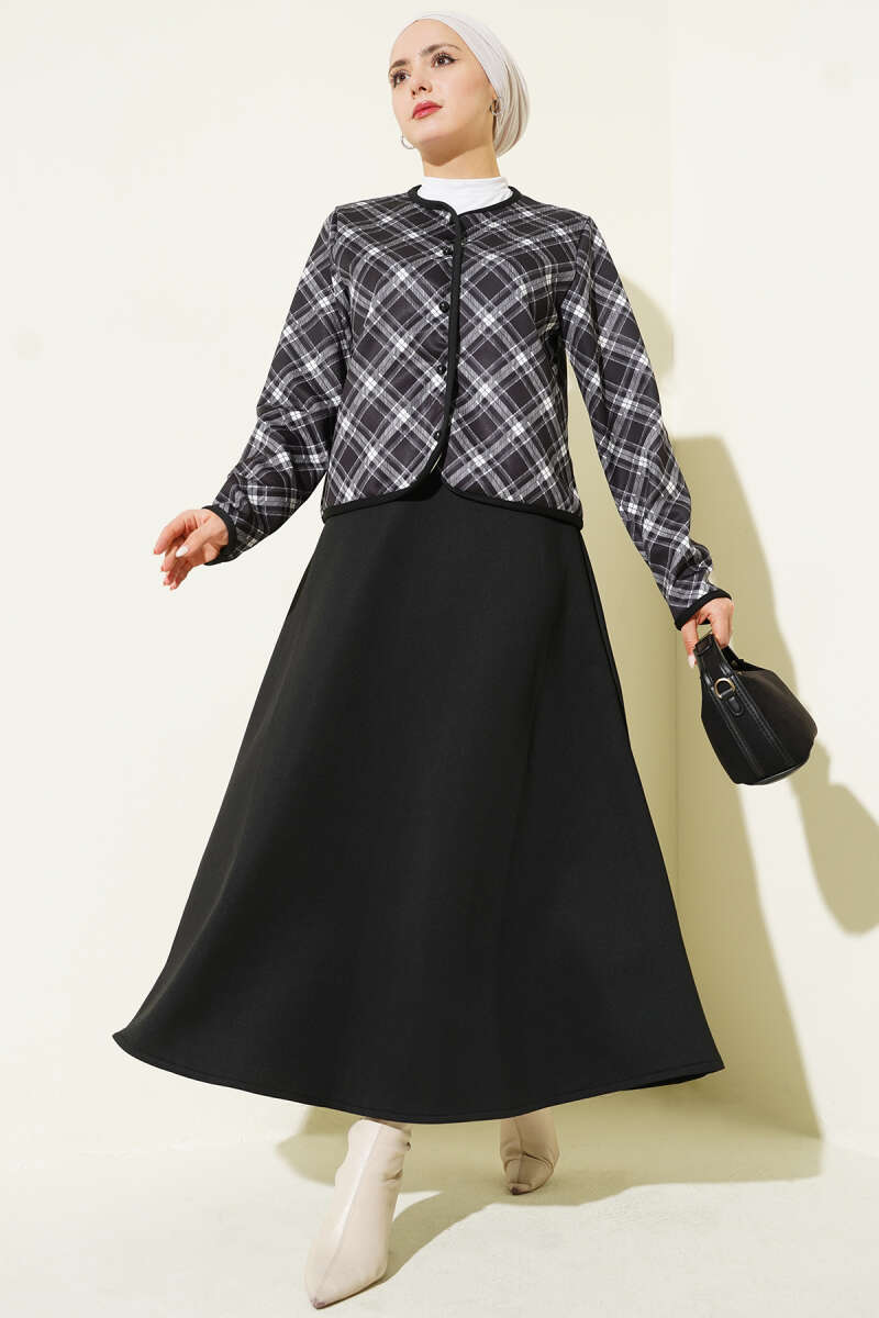 Ekoseli Ceketli Etekli Scuba Takım Kahve