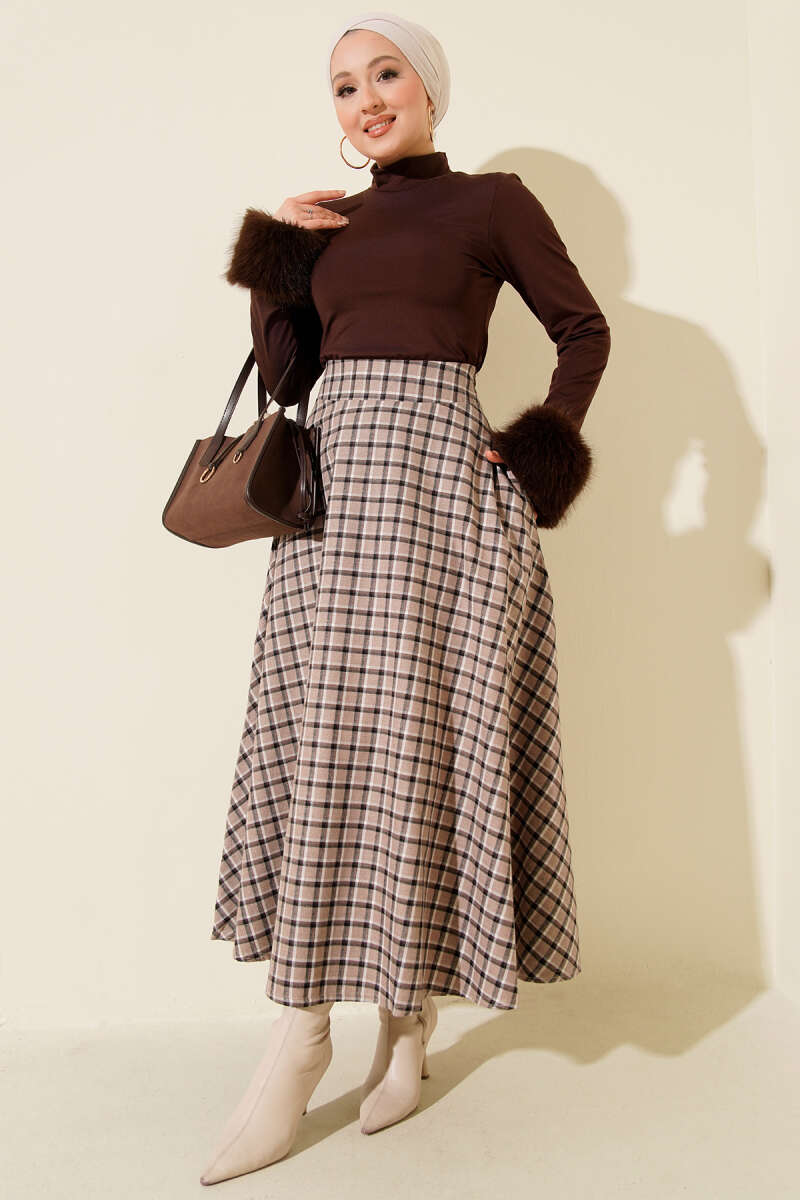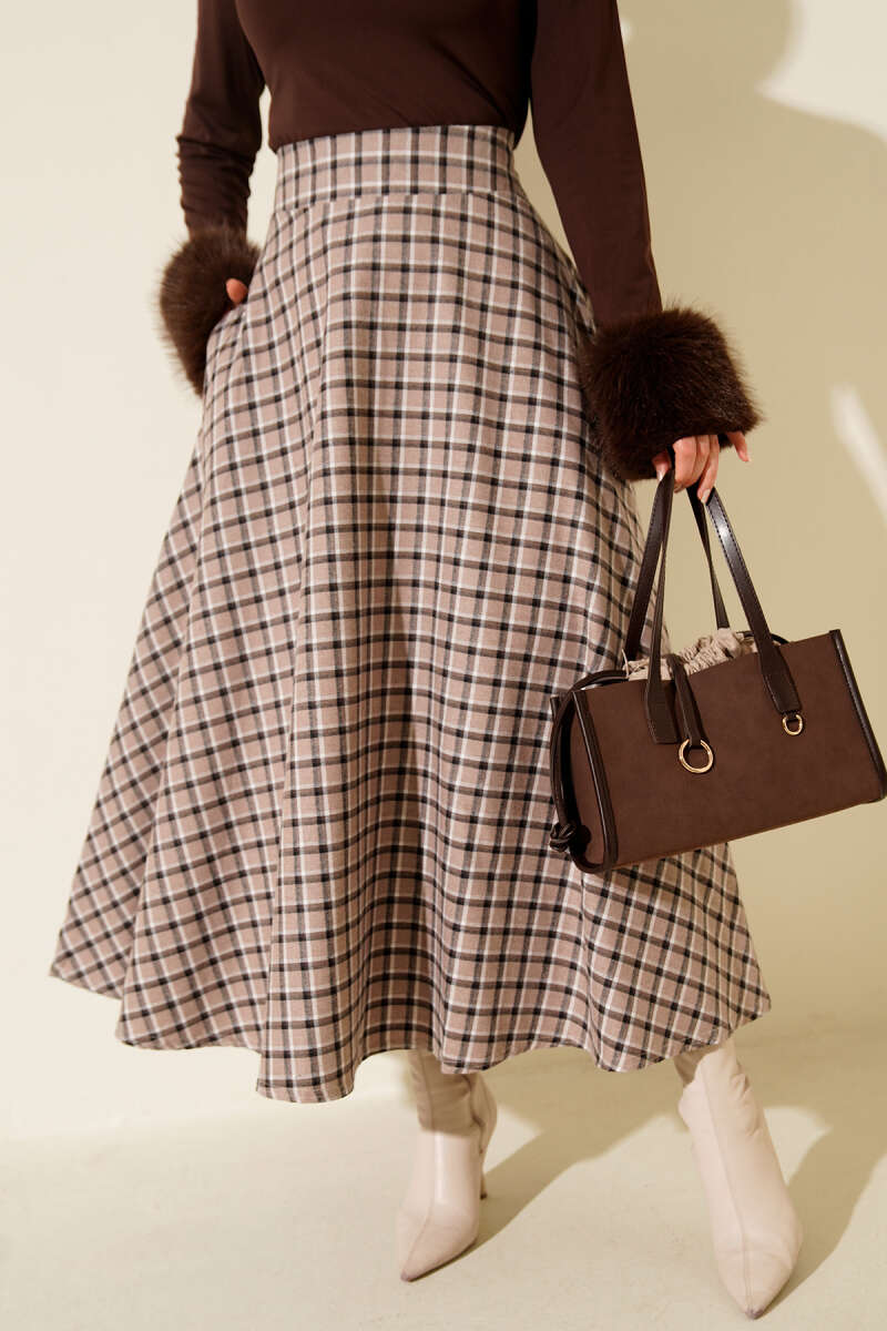 Ekoseli Kloş Etek Kahve