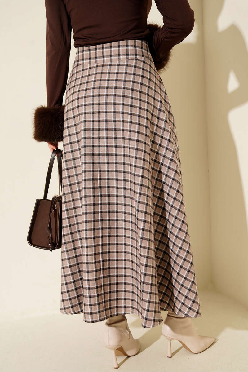 Ekoseli Kloş Etek Bej