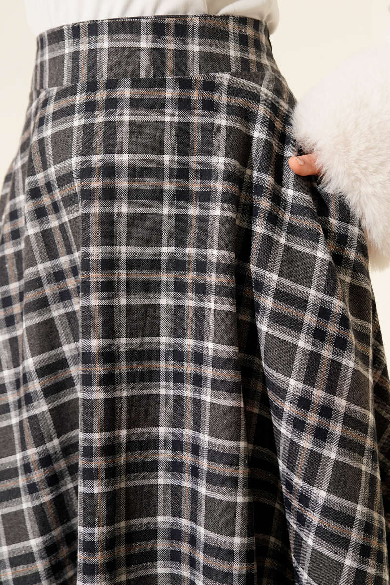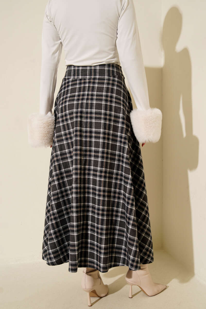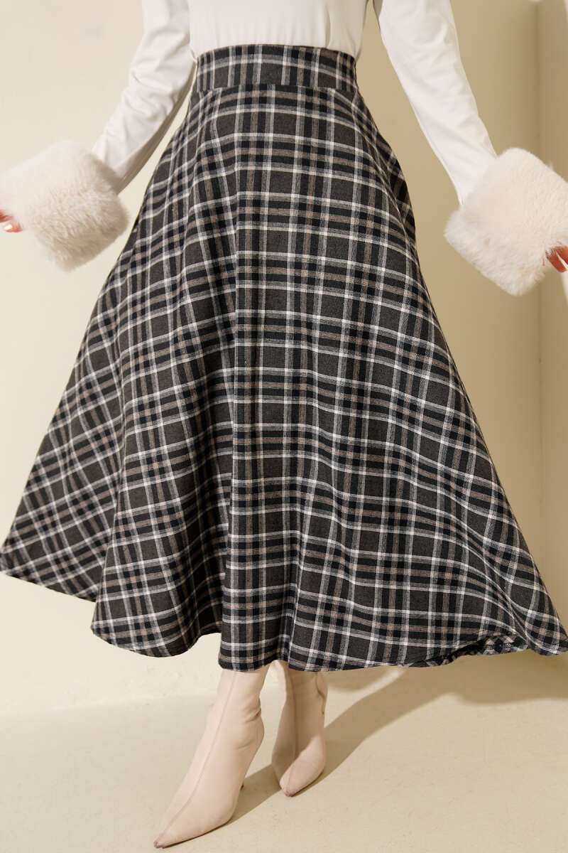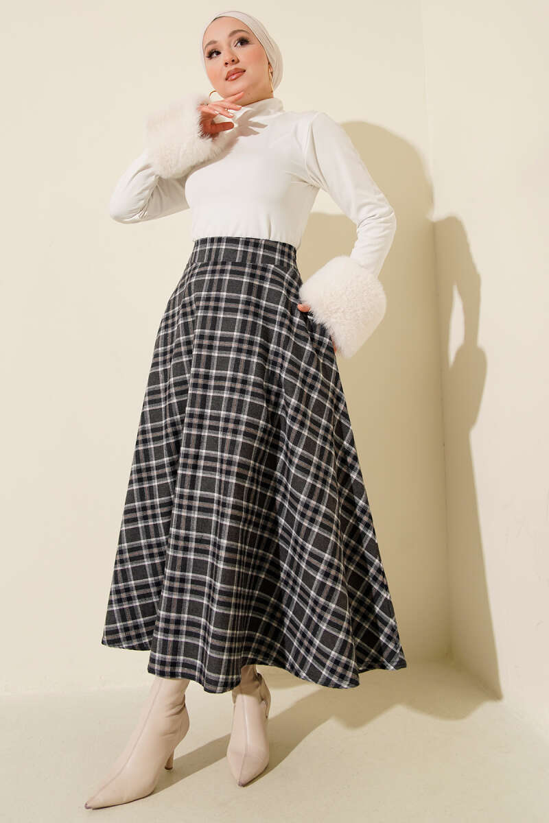 Bel Lastikli Ekoseli Scuba Etek Kahve