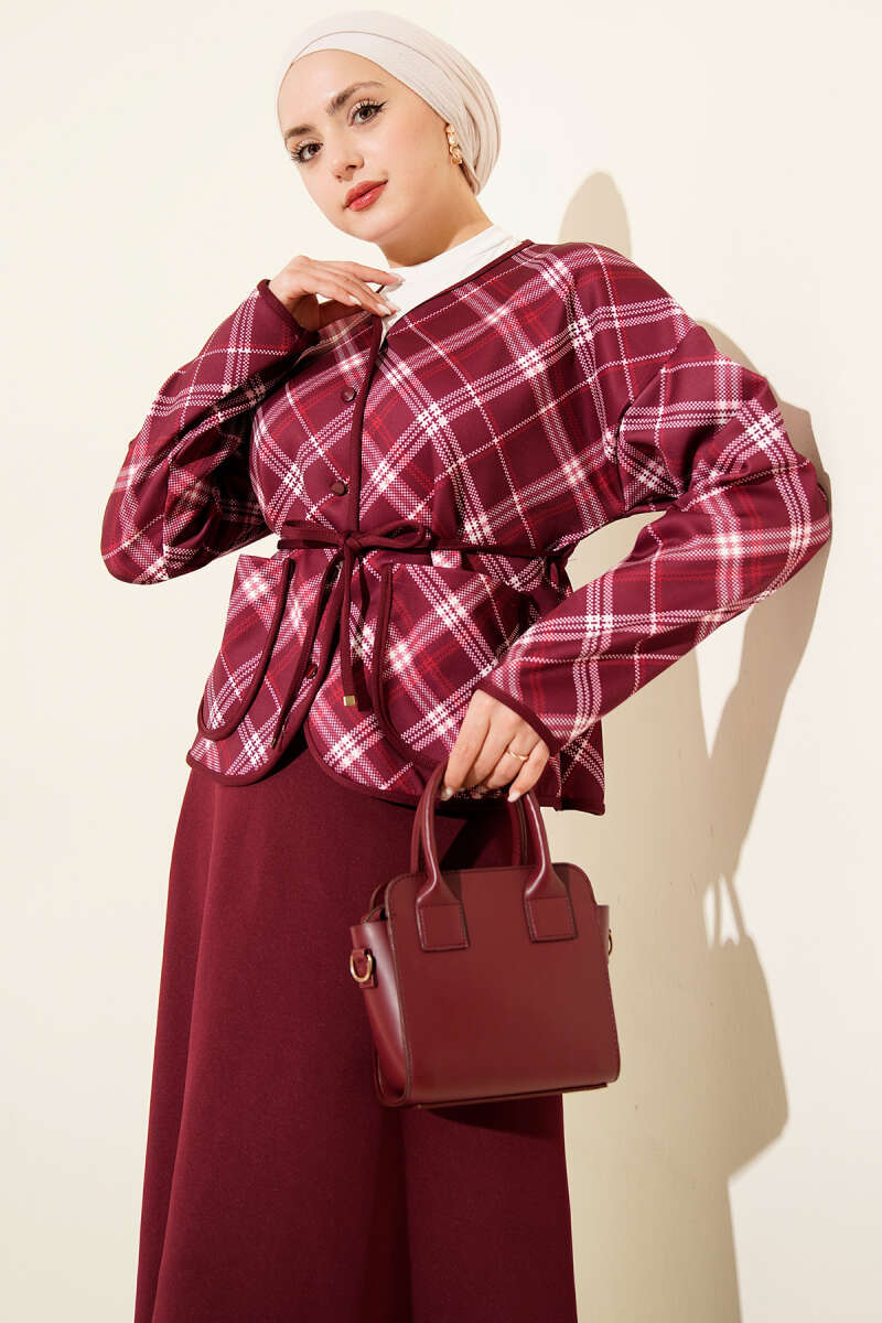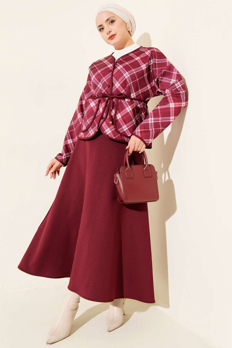 Baklava Desen Düğmeli Triko Hırka İkili Takım Bordo