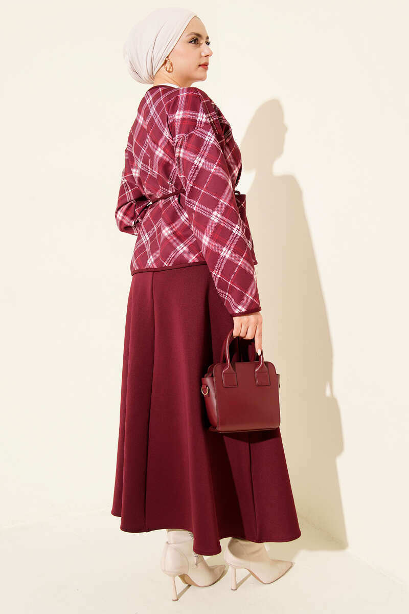 Ekoseli Düğmeli Scuba Etekli Takım Lacivert