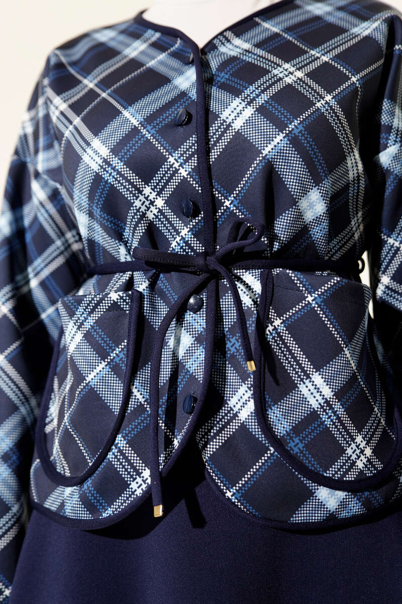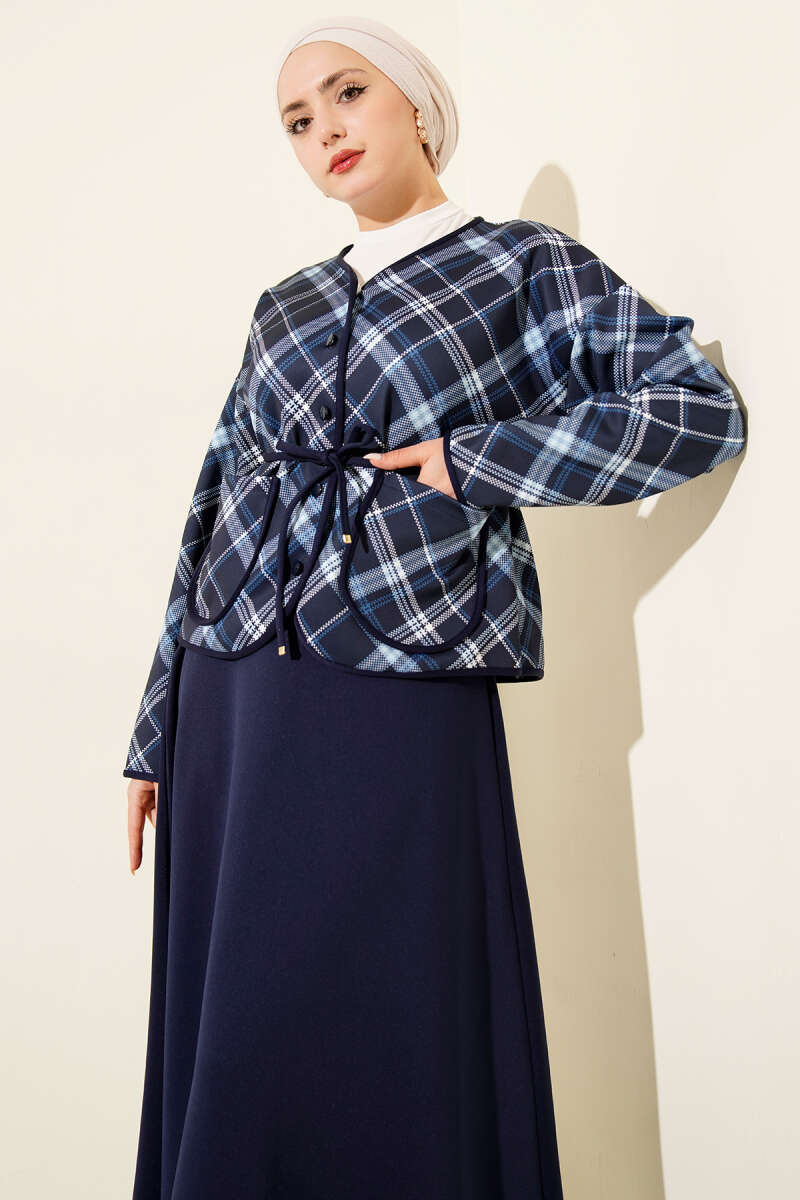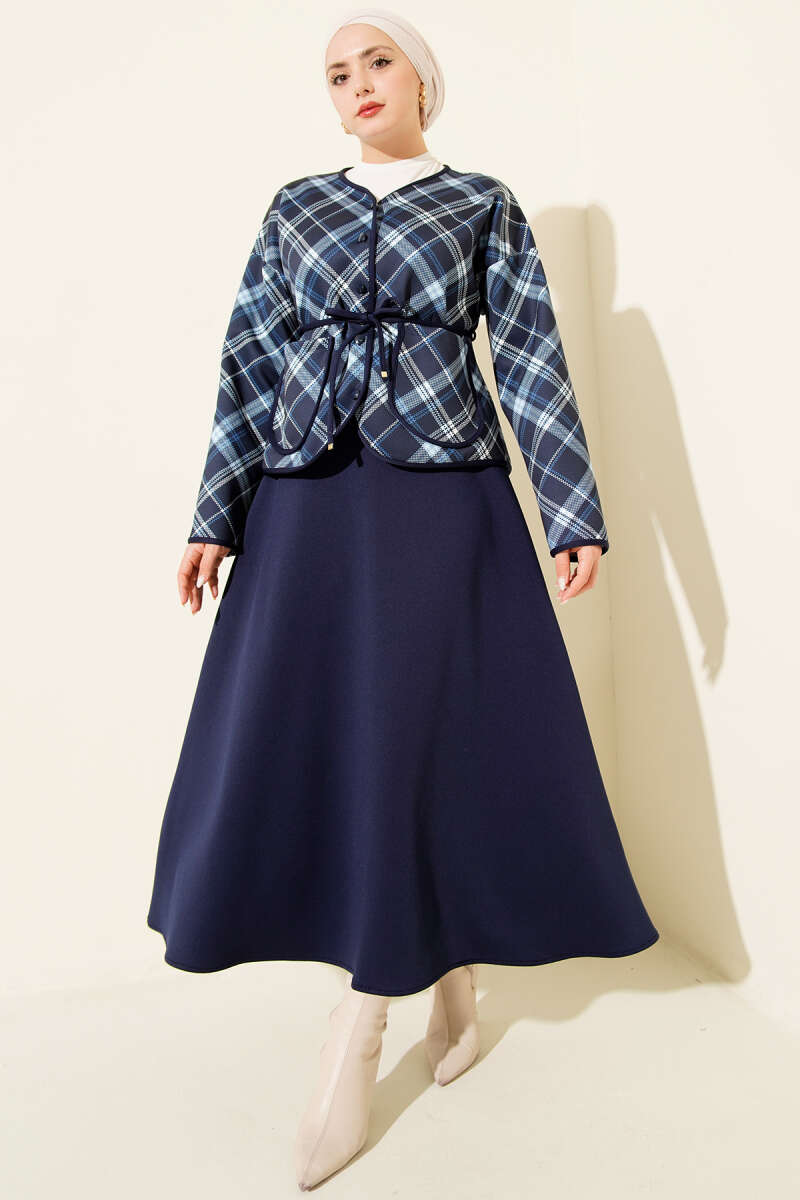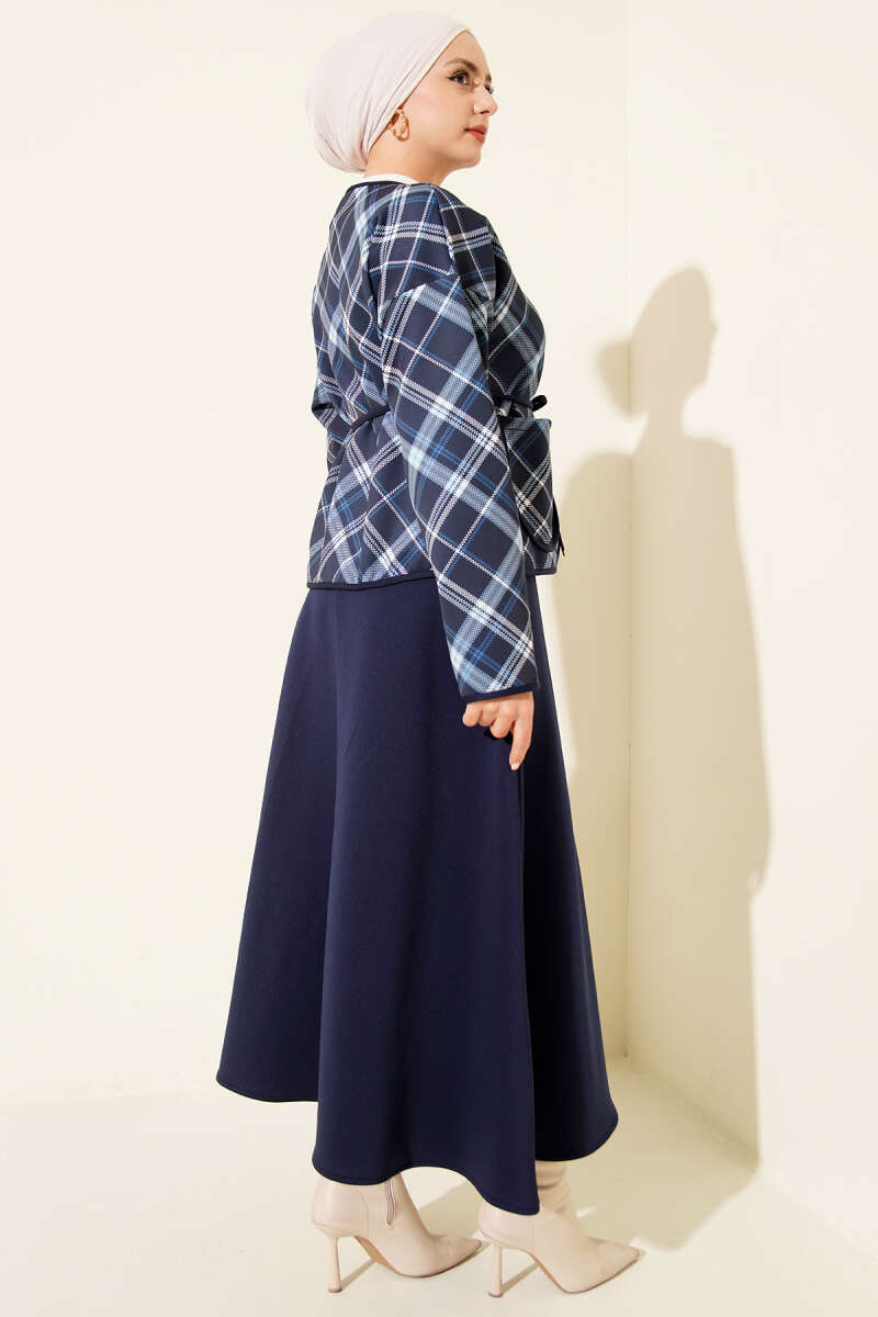 Ekoseli Düğmeli Scuba Etekli Takım Siyah