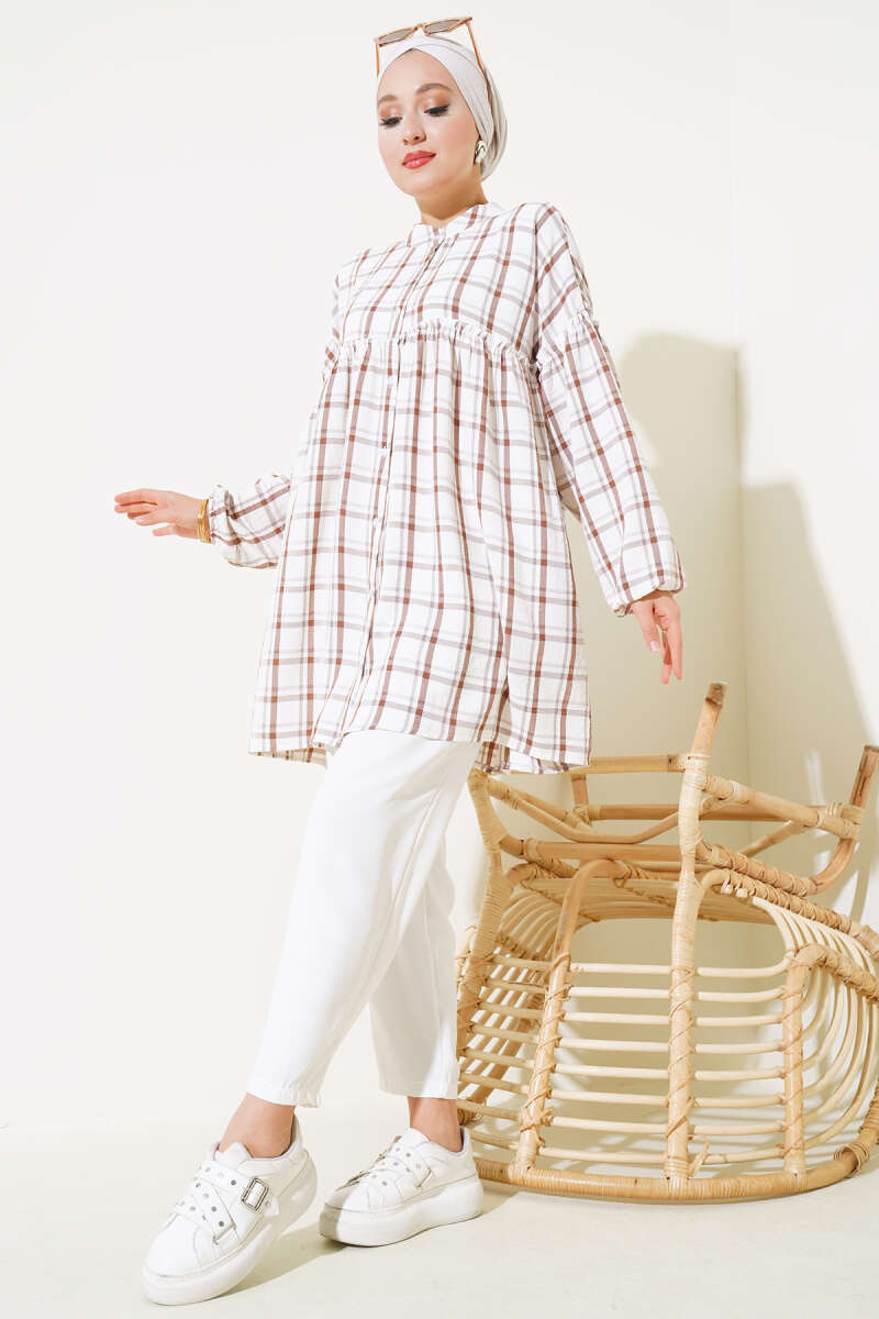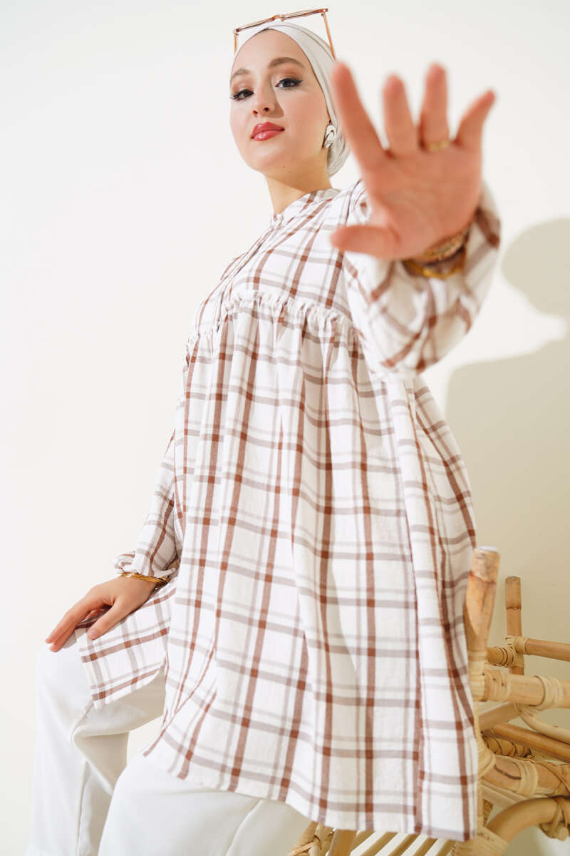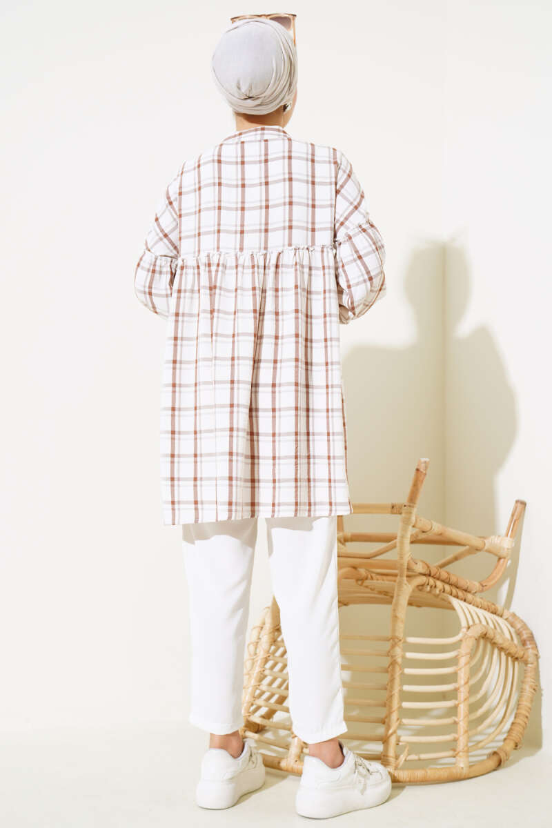 Ekoseli Fırfırlı Gömlek Kahve