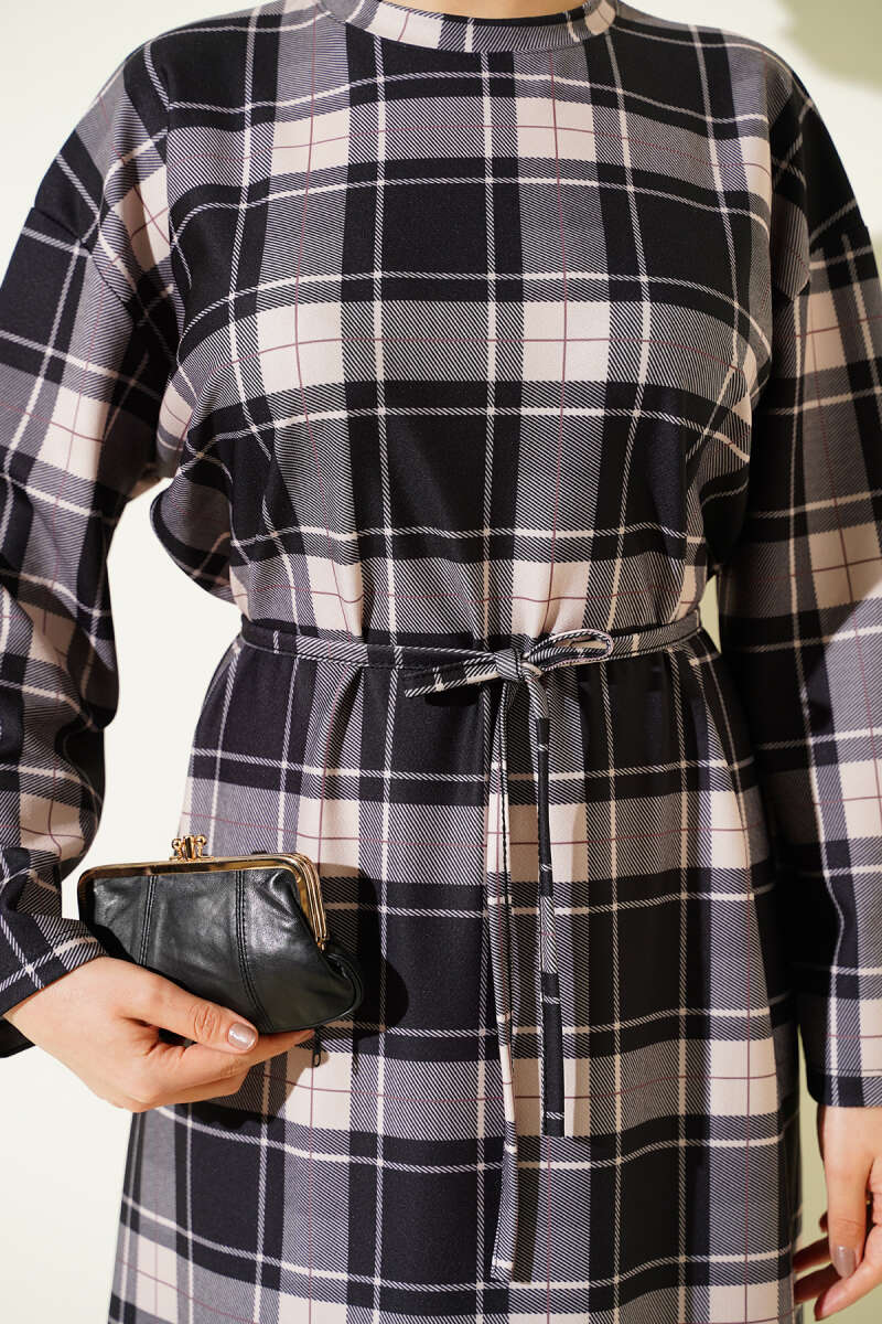 Ebru Desen Yarım Düğmeli Elbise Taba